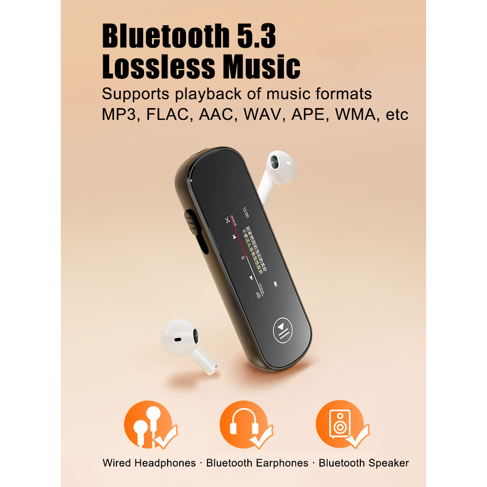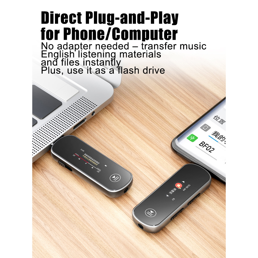 FAMUE BF02 64GB Retractable USB-C MP3 Player - Direct Computer/Phone Plug, BT 5.3 Clip-On Sport