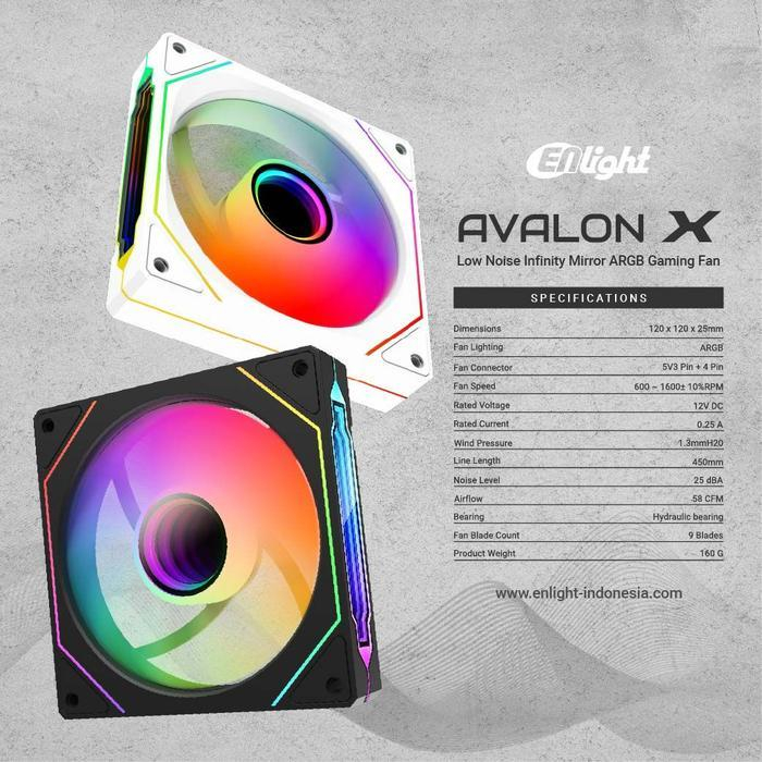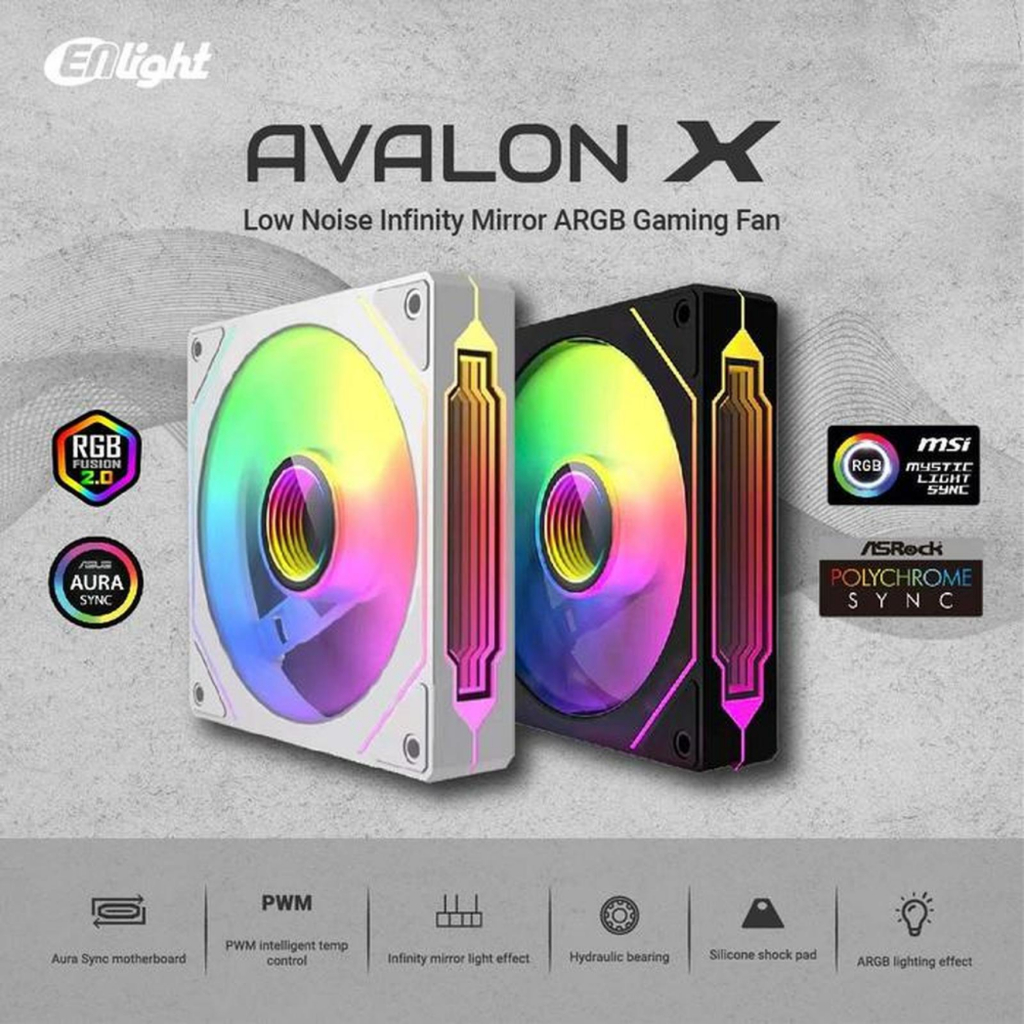 FAN Casing Enlight Avalon X ARGB Sync Forward Reverse PWM Infinity Mirror Low Noise 12CM 120mm Kipas Gaming Case PC