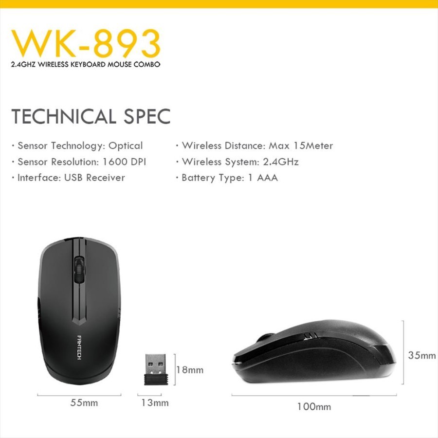 FANTECH WK893 2.4 GHz wireles keyboard + mouse combo silent - Black