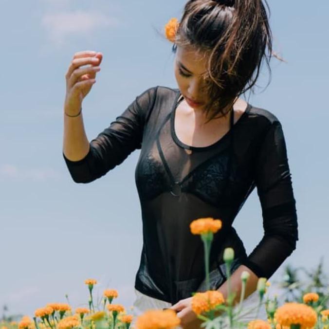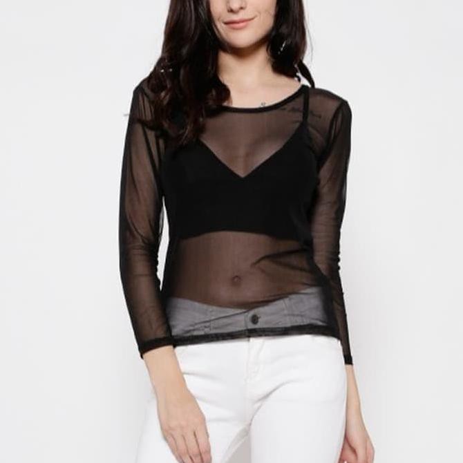 FASHION WANITA !! TRANSPARENT / TRANSPARAN TOP FISHNET MESH PLAIN SHEER TOP BLOUSE BAJU - PLAIN