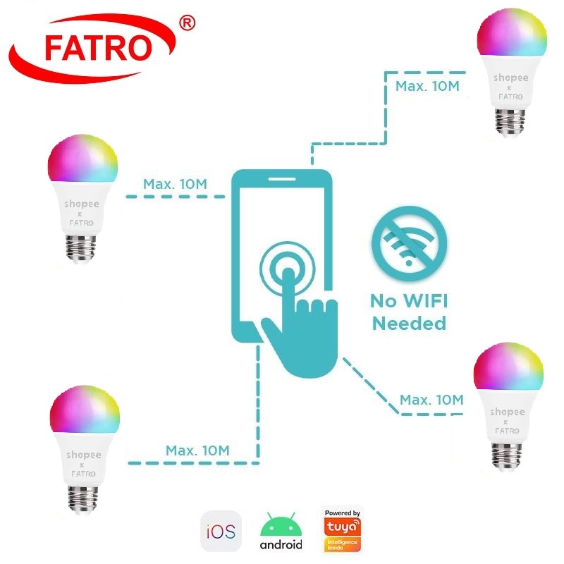 FATRO SMART BULB LAMPU LED 12 WATT RGBWW / SMART BULB / LAMPU RGB / BOHLAM WIRELESS BLUETOOTH SMART BULB LED BLUETOOTH 12WATT