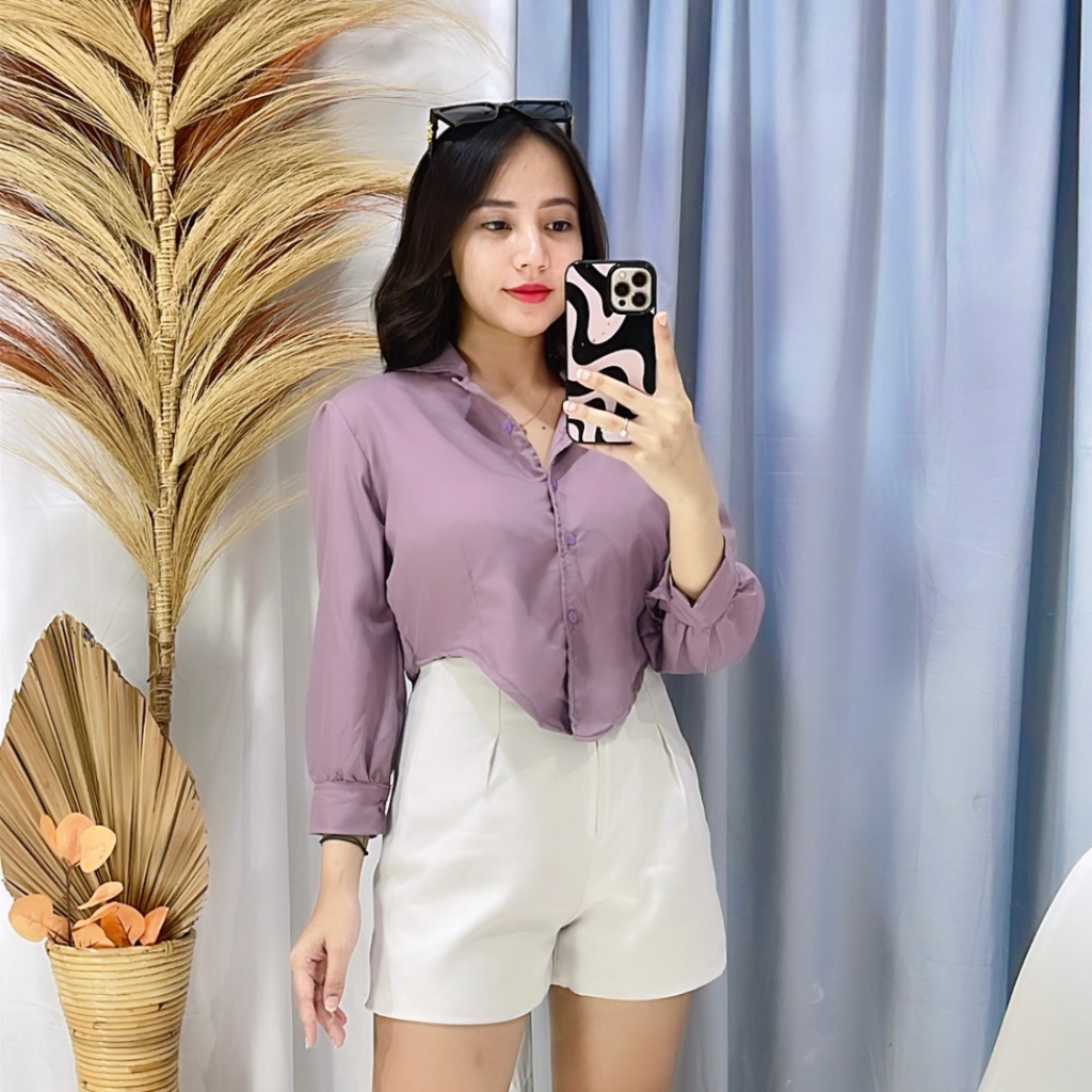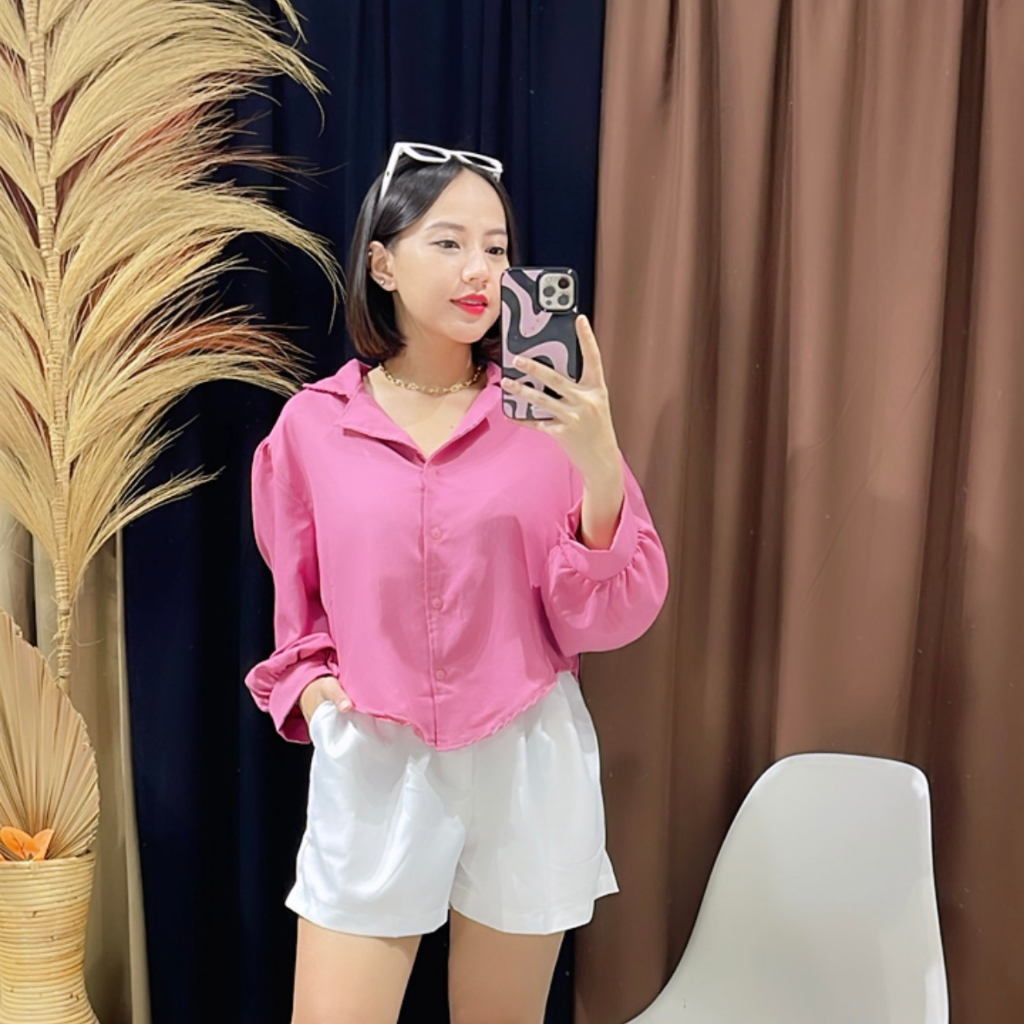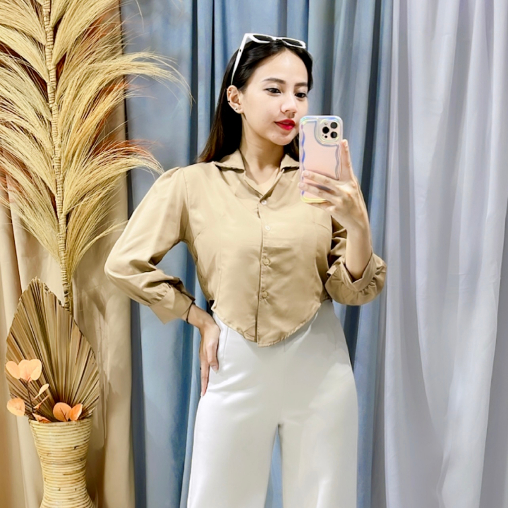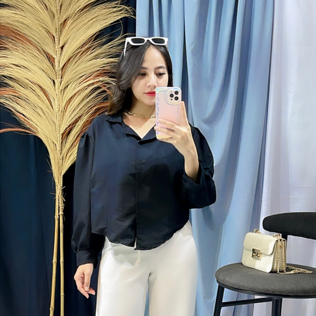 FAWAZ - ATASAN KEMEJA CROP PUFF CHIA LENGAN PANJANG BAJU CROP / BAJU CROP WANITA