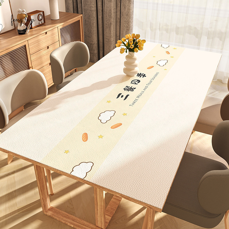 FENGLAN sederhana tetapi tidak biasa meja alas kulit asli dengan garis-garis modis/alas meja kulit/taplak meja /taplak meja tamu/taplak meja makan/taplak meja makan anti air/taplak meja anti air/taplak meja panjang/taplak meja aesthetic/taplak meja bulat
