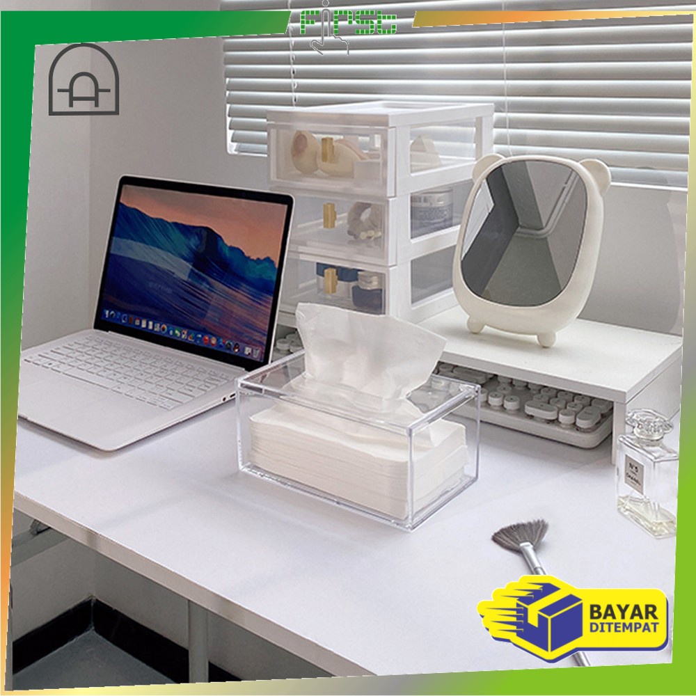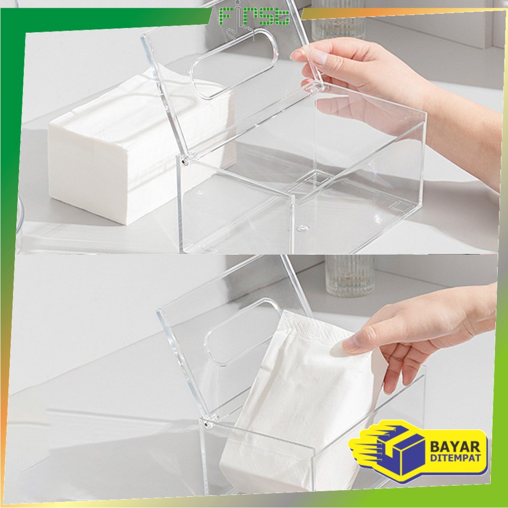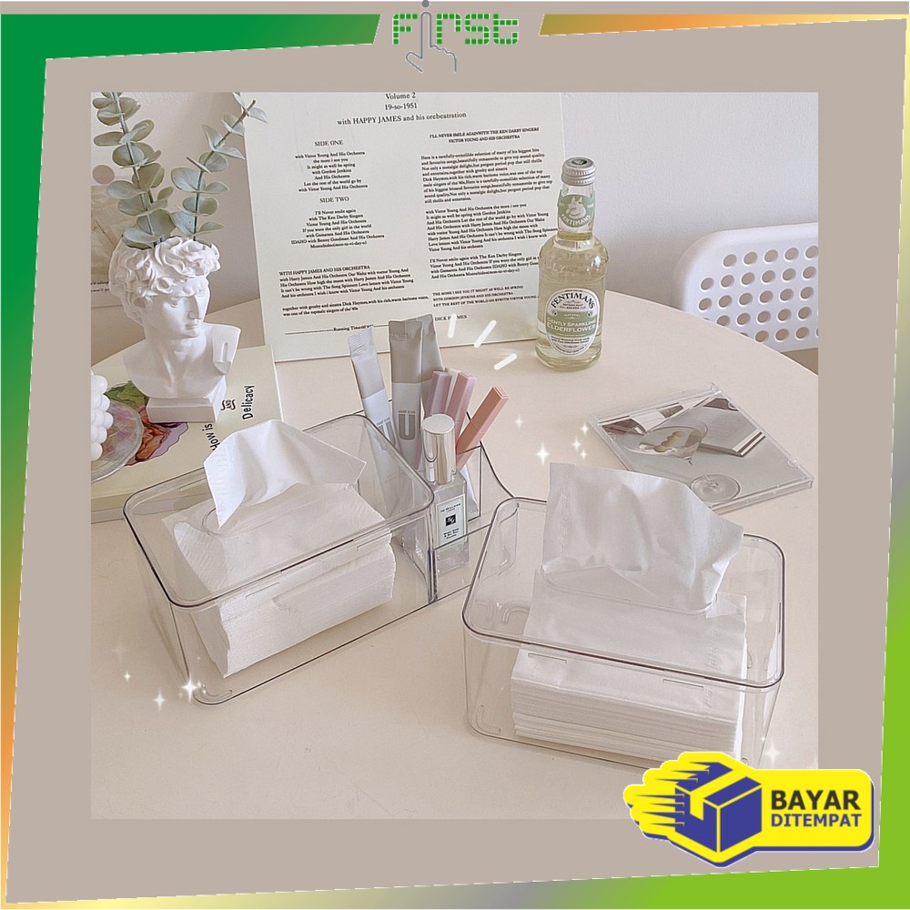 FH-C713 Tempat Tissue Polos Persegi Transparan / Kotak Tempat Tisu Wadah Tissue Organizer Meja Tissue Box