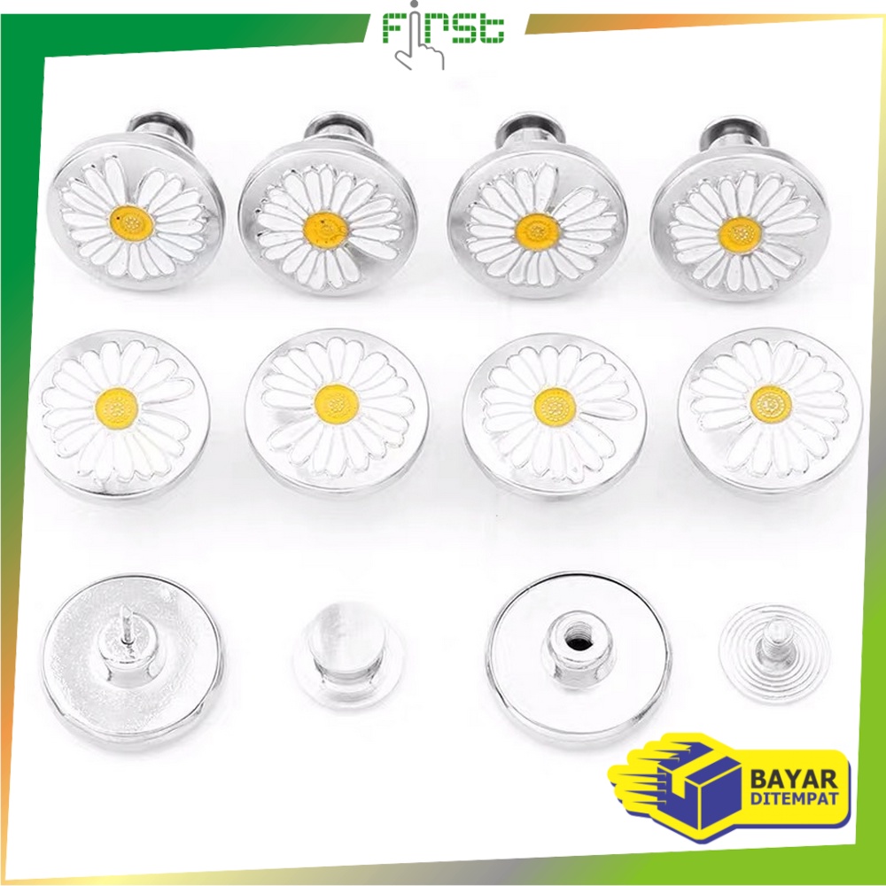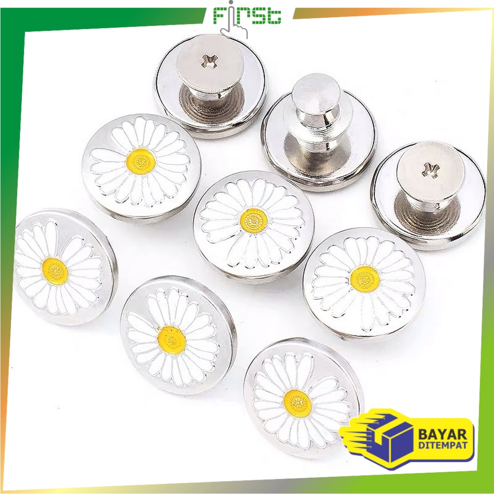FH-P202 Kancing Celana Jeans Kancing Jepret Pinggang Adjustable / Kancing Motif Daisy Multifungsi / Magic Button