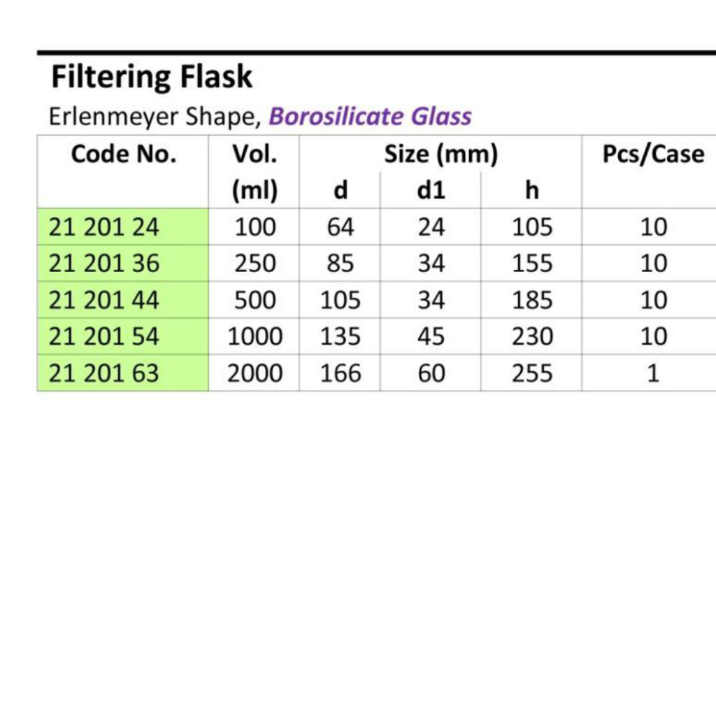 FILTERING FLASK 2000mL. Erlenmeyer Shape. Borosilicate Glass. DURAN