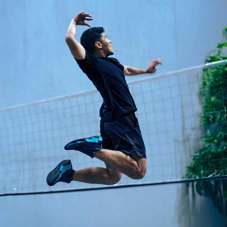 [STOCK SAMPLE] FIXCH - Craxent Sepatu Voli Mid Cut - Gray/Blue Coracao/Black