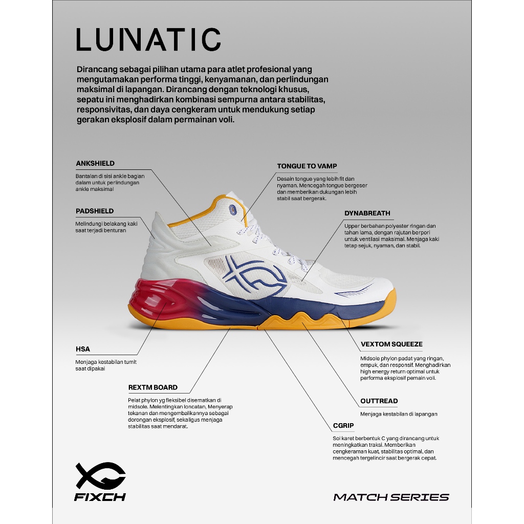 FIXCH - Lunatic Nebula Sepatu Voli Mid Cut White/Nebula Blue/Cerry Red