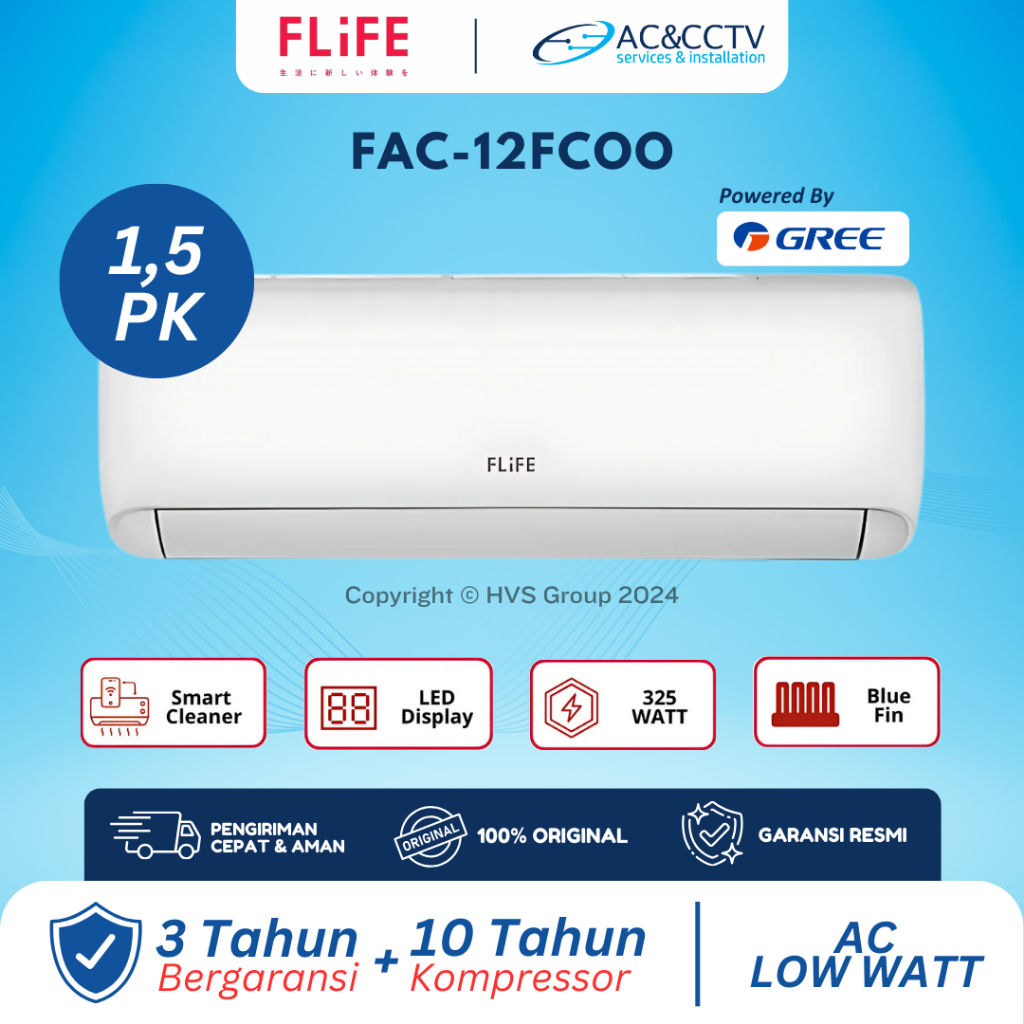 FLIFE AC FAC-12FCOO LOW WATT 1.5 PK | Hemat Listrik - Self Diagnosis - Auto Clean - 950 watt | By Gree
