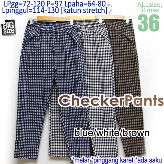 CHECKER PANTS SZ 36, CELANA PANJANG JUMBO WANITA,CELANA PANJANG KATUN BIGSIZE,CELANA PANJANG BIGSIZE