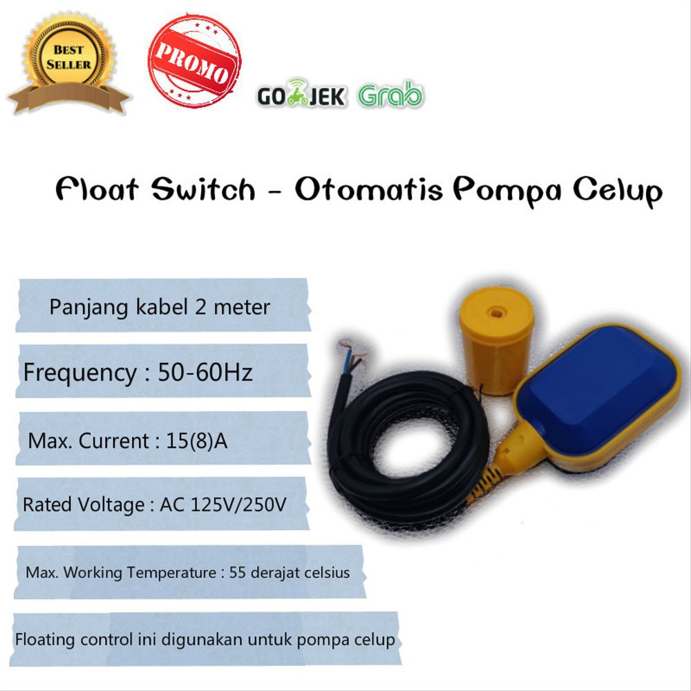 FLOAT SWITCH 2 MTR KABEL OTOMATIS POMPA CELUP DAN TOREN PENAMPUNGAN AIR FLOATING SWITCH terbaik
