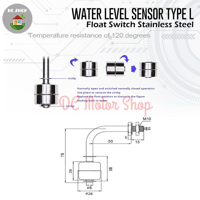 FLOAT SWITCH STAINLESS STEEL WATER LEVEL SENSOR TYPE L ARDUINO ORIGINAL QUALITY