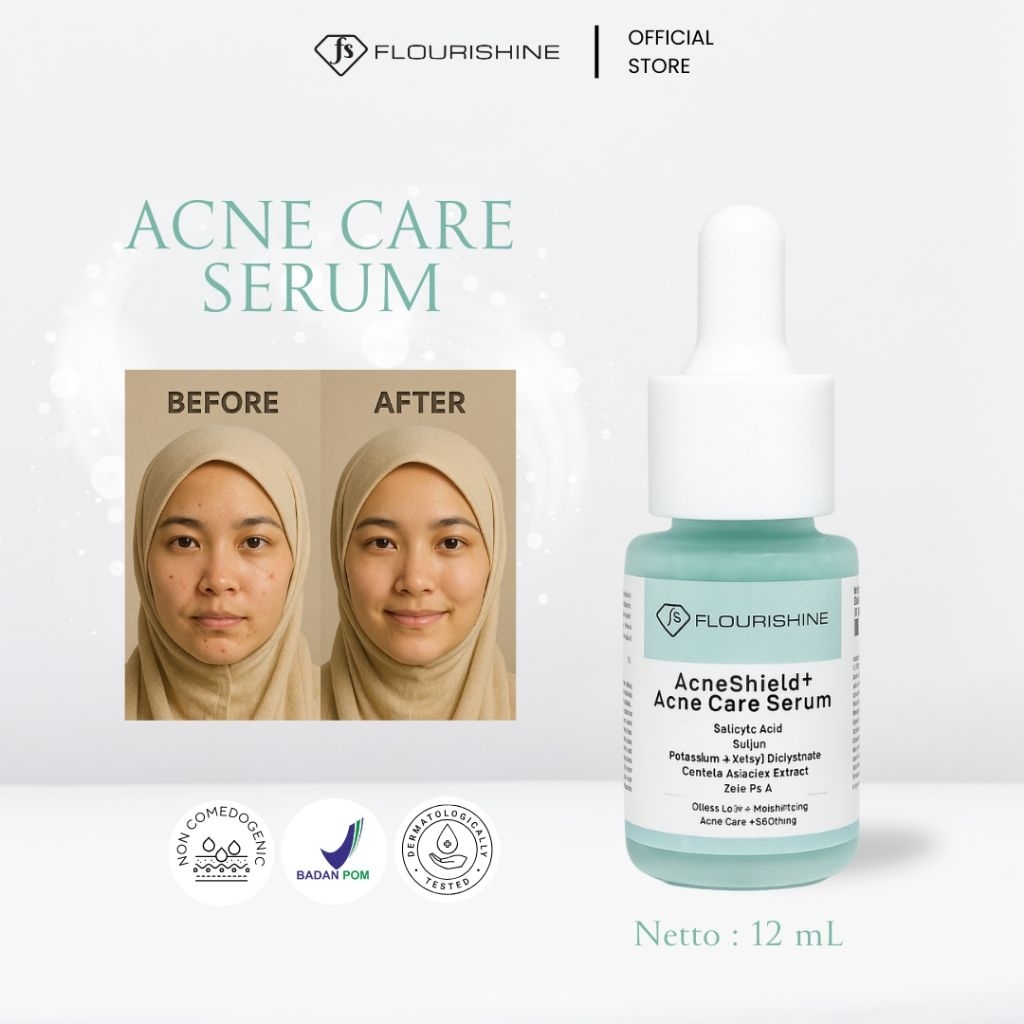 FLOURISHINE AcneShield+ Acne Care Serum | Serum Jerawat dengan BHA Sulfur | Centella | Skincare Acne