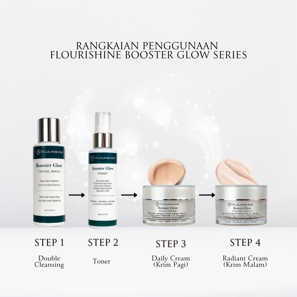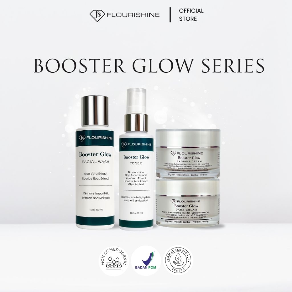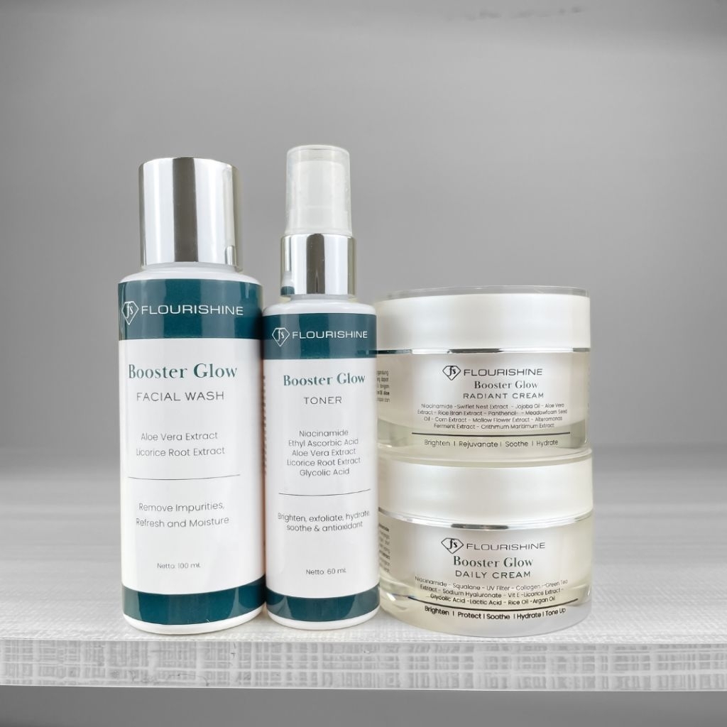 FLOURISHINE Paket Skincare Booster Glow Lengkap | Facial Wash Toner Cream Cerah Natural Glowing