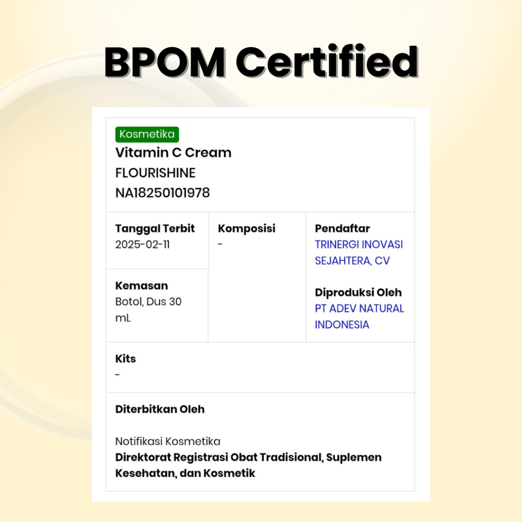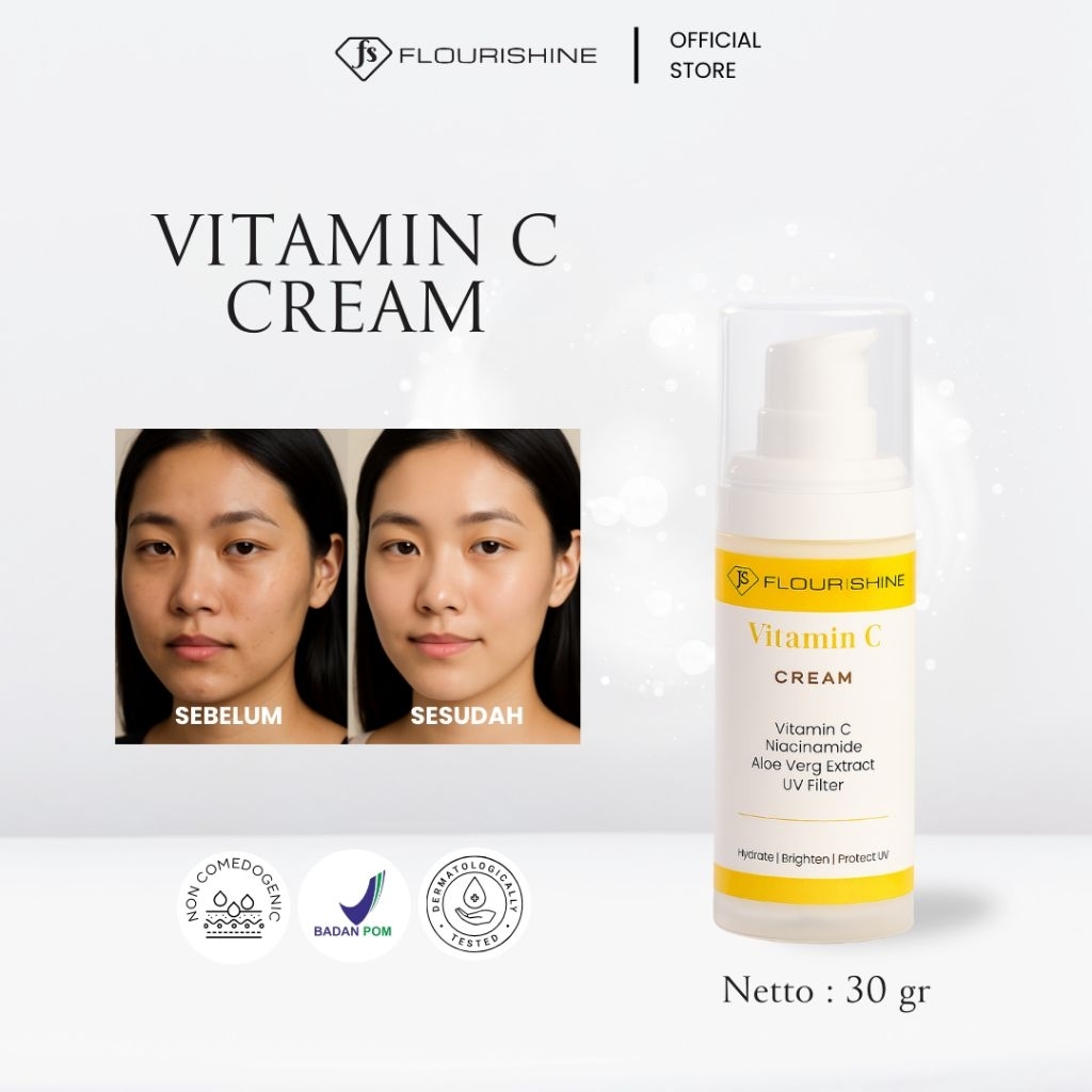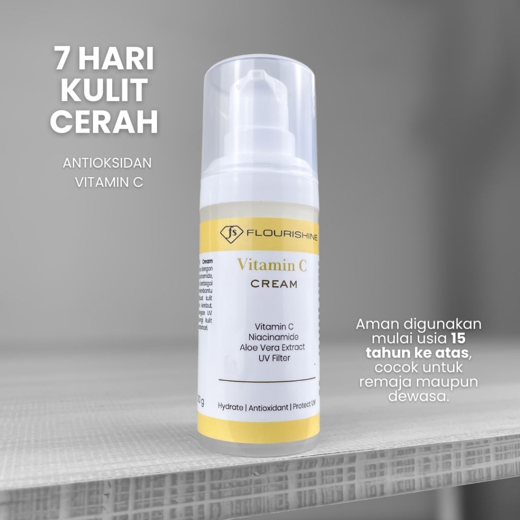 FLOURISHINE Vitamin C Cream | UV Filter | Niacinamide | Krim Harian Pelindung dan Pencerah Wajah