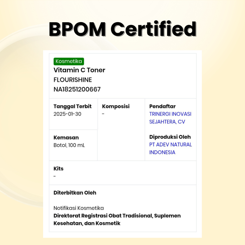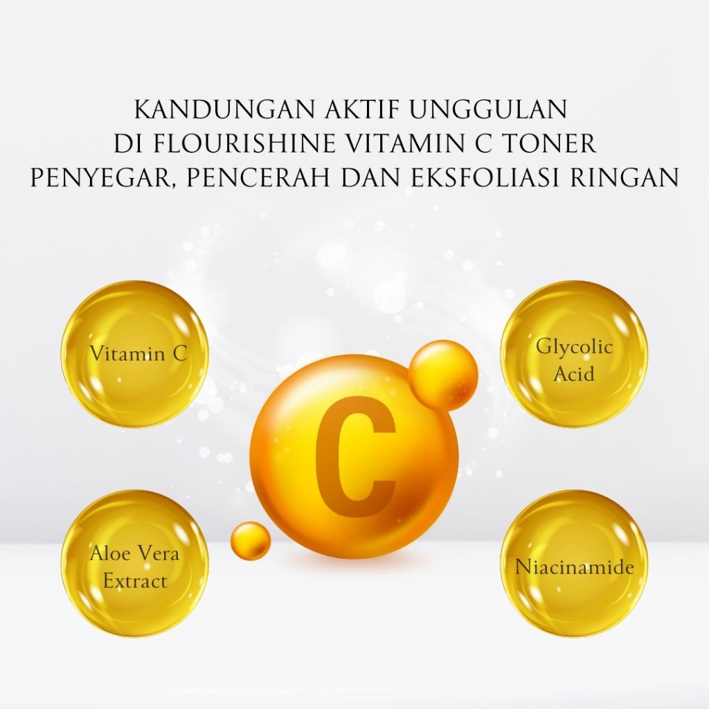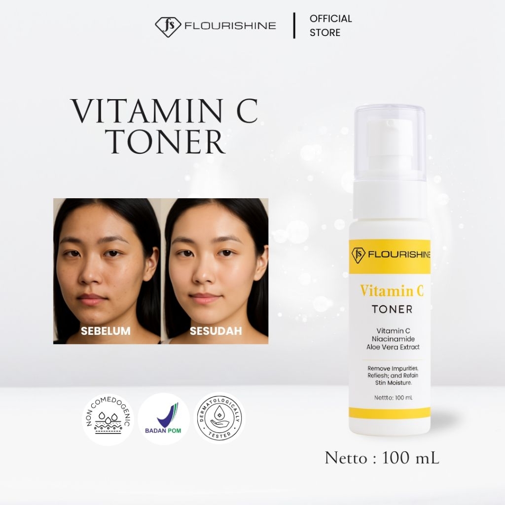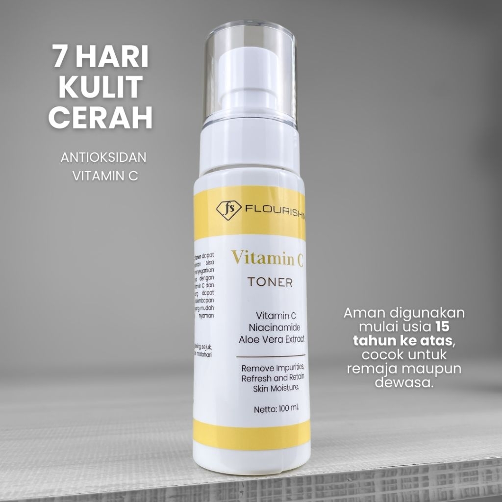 FLOURISHINE Vitamin C Toner | Niacinamide | Aloe Vera | Toner Menyegarkan, Mencerahkan & Melembapkan
