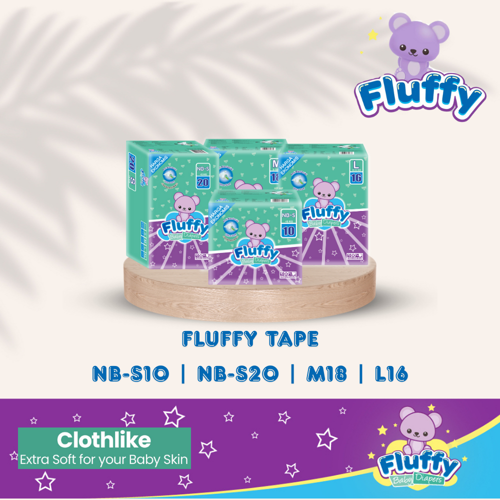 FLUFFY Popok Bayi Tipe Perekat Tape NB-S10 NB-S20 M18 L16 Halal Daya Serap Tinggi Clothlike Lembut