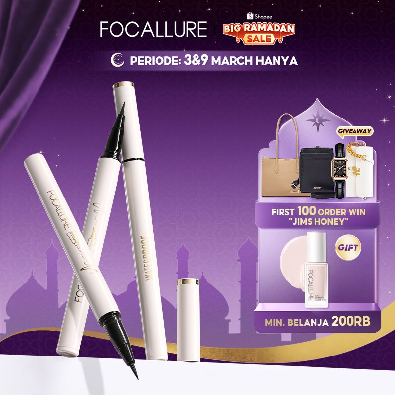FOCALLURE #ConfidenceHalo Eyeliner Ultrafine quick-dry Tahan air liquid Eye liner