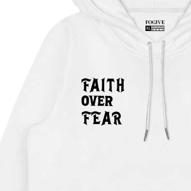 FOGIVE Hoodie Pria Wanita Unisex Katun Pullover Faith Over Fear Putih