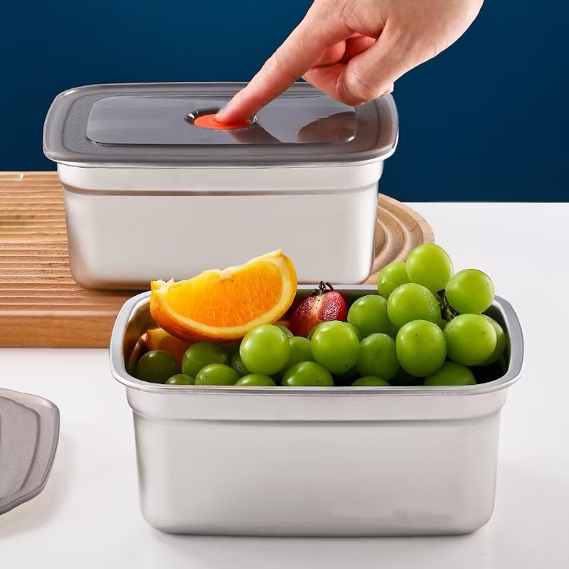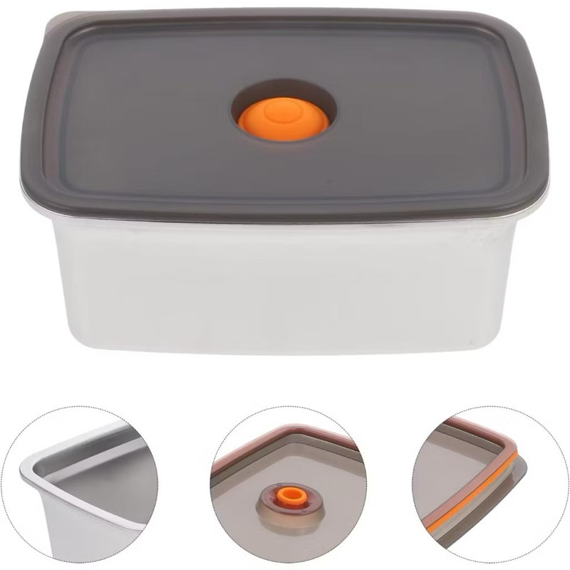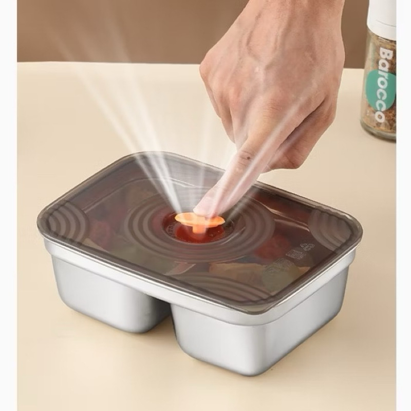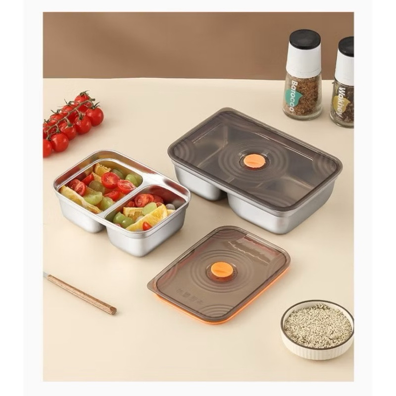 FOOD CONTAINER STAINLESS STEEL TUTUP PLASTIK KEDAP VACUUM SILICONE SEAL / LUNCH BOX / FOOD PAN STORAGE / FRESH BOX TEBAL