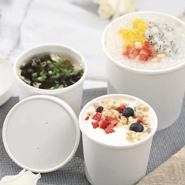 FOOD GRADE WHITE KRAFT PAPER BOWL + LID / PAPER BOWL PUTIH 8oz -240ml