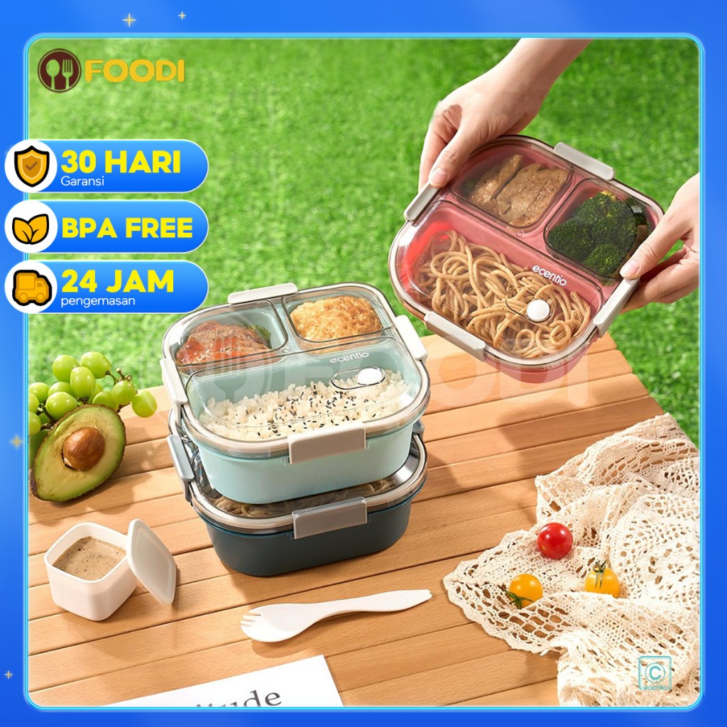 ecentio & FOODI Kotak Makan set 3 Sekat 1100ml+100ml tempat makan anak Biru