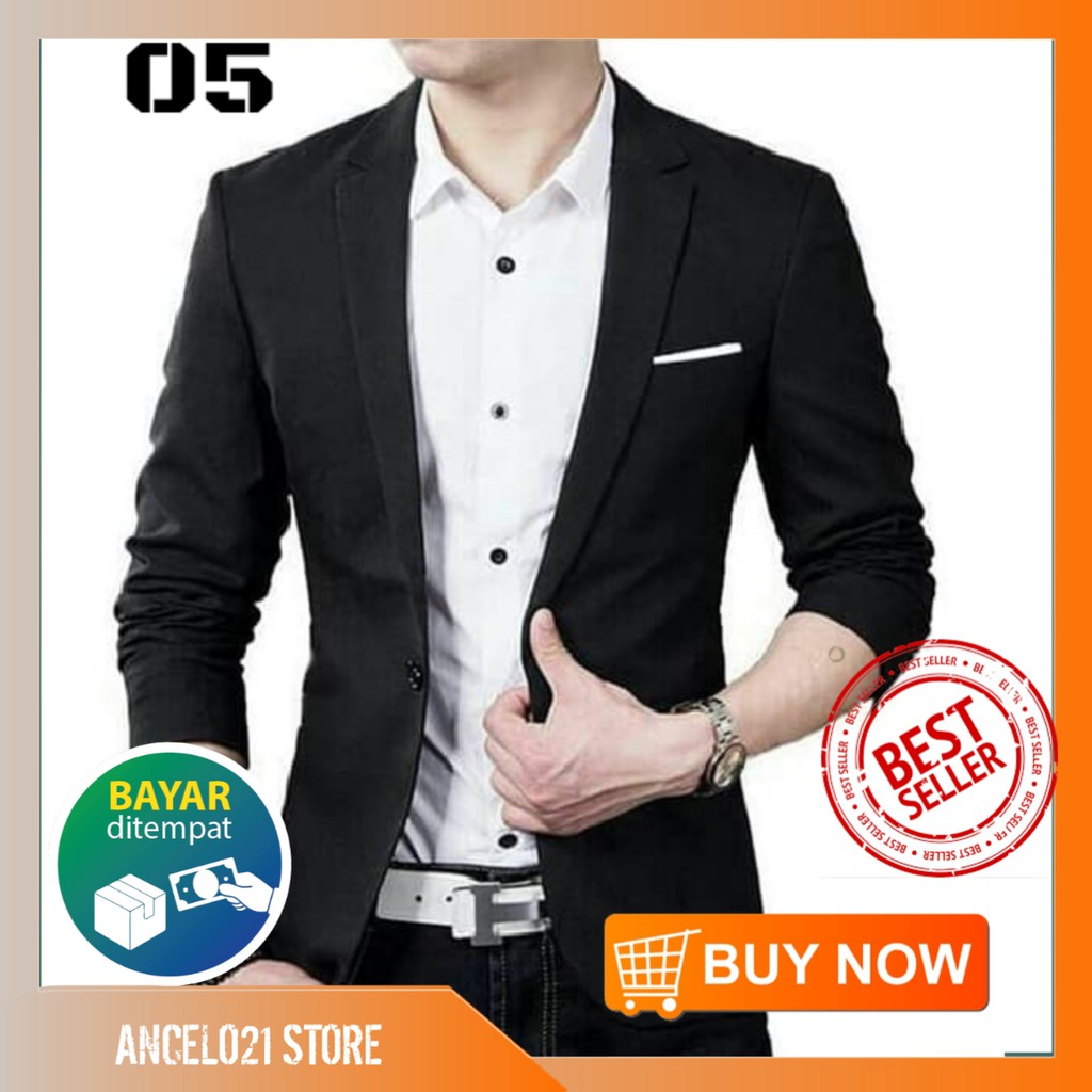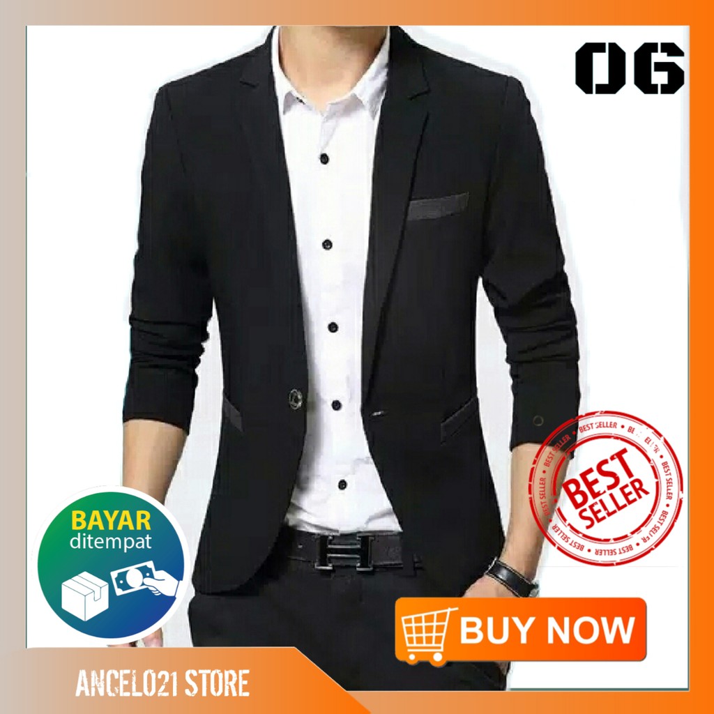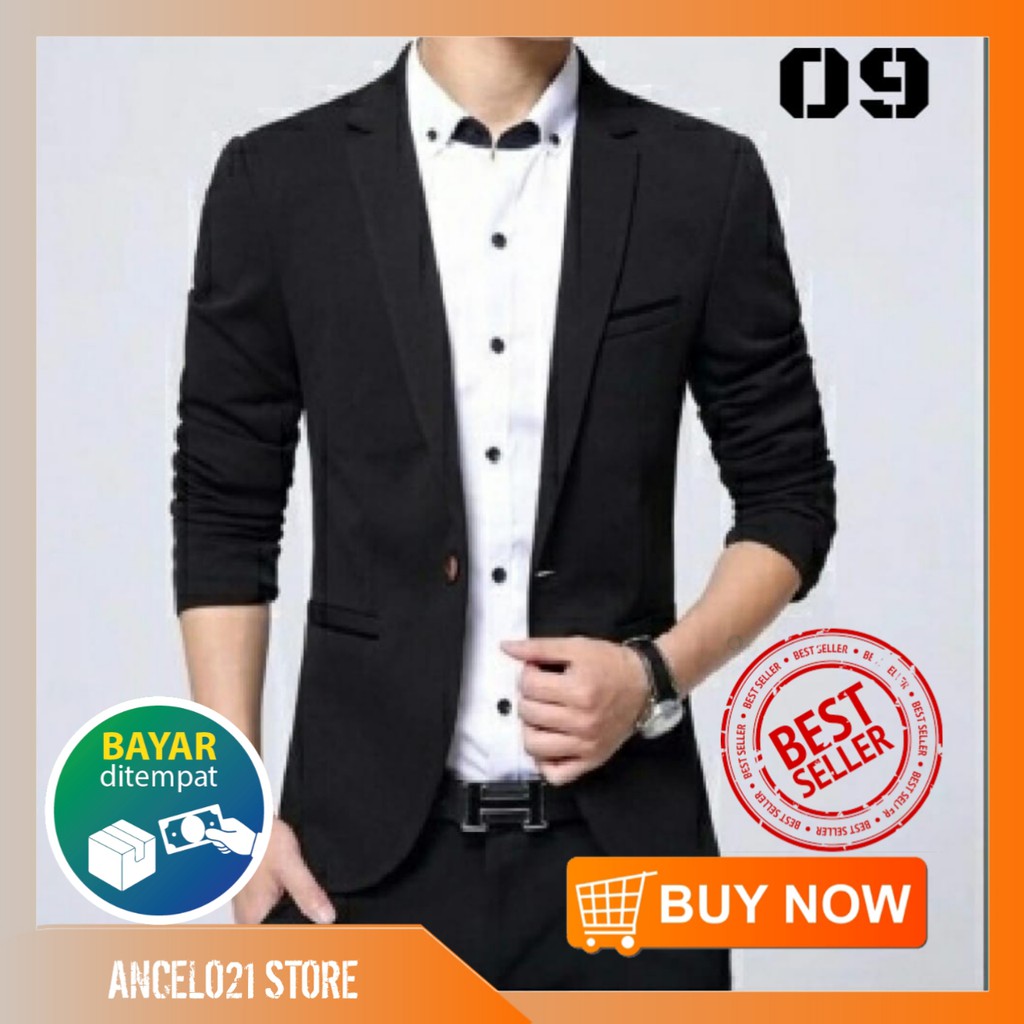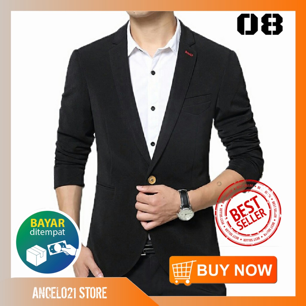 FORMALAND - Jas Hitam Pria Slimfit Blazer Hitam Pria Laki laki
