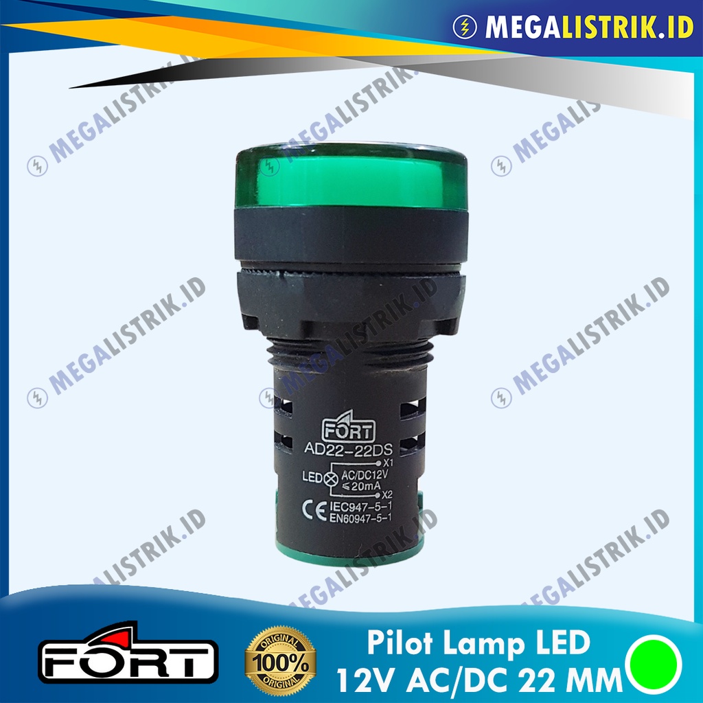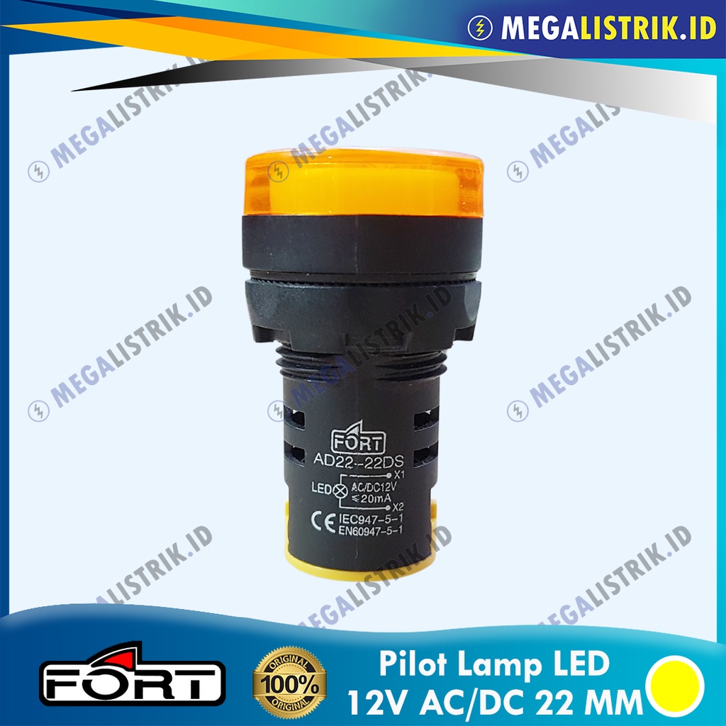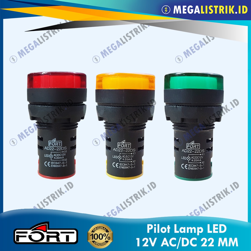 FORT PILOT LAMP LED 22MM 12V AC/DC / LAMPU KONTROL PANEL LED 22 MM 12 VOLT AC / DC MERAH / KUNING / HIJAU