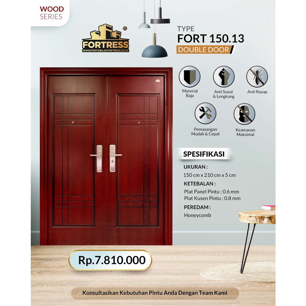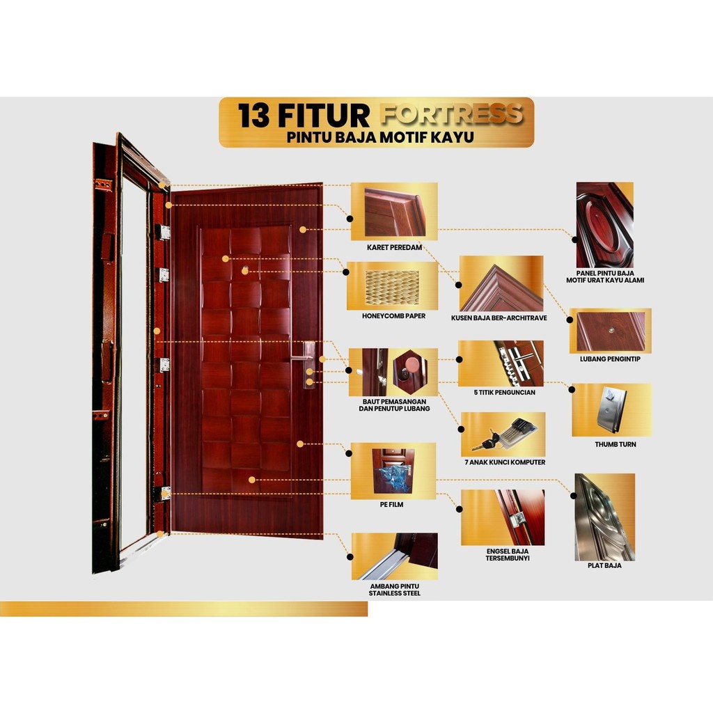 FORTRESS Pintu Baja 150.13/Pintu Besi/Pintu Rumah/Pintu Utama FULL SET - MOTIF KAYU