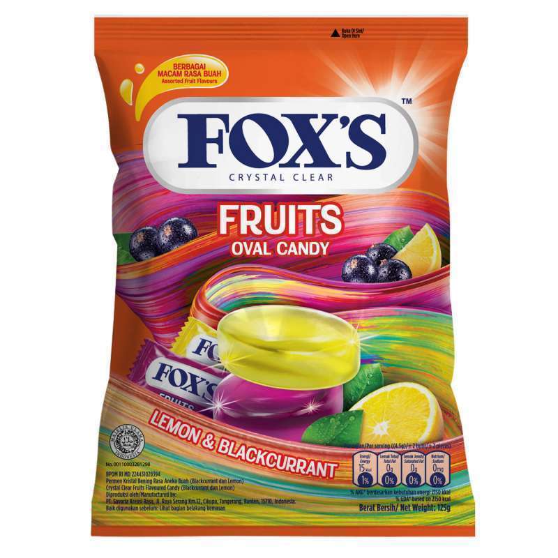 FOX'S BERRIES OVAL CANDY 125G / PERMEN FOX CRYSTAL CLEAR / FOX'S FRUITS / SPRING TEA / MINT BLOSSOM / FRUITY MINTS / COFFEE OVAL CANDY