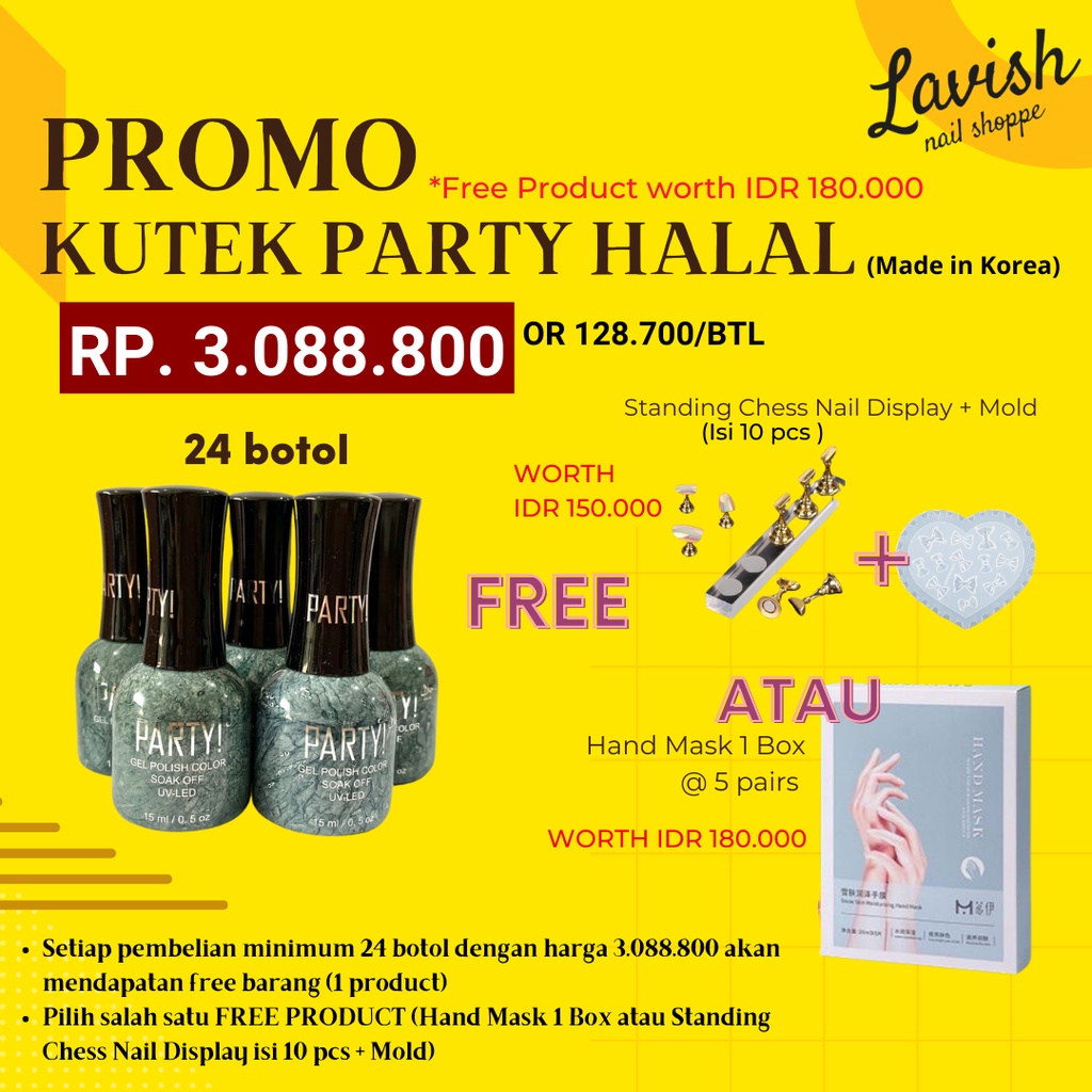 FREE BUFFER & FILE PARTY! ORDER PARTY GEL HALAL 24 BOTOL DENGAN HARGA 125.000-128.700 /BOTOL