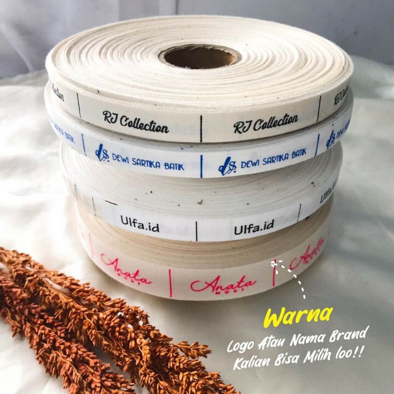 FREE DESIGN - LABEL BAJU / LABEL HIJAB / LABEL KAOS / LABEL CUSTOM DESAIN / LABEL PITA KATUN WARNA PUTIH/HITAM/PUTIH TULANG Isi 700pcs