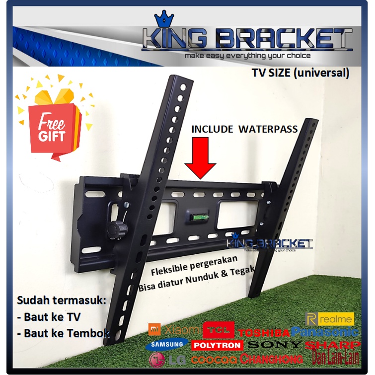 FREE HDMI!! Bracket TV LED 32" s/d 75" Universal (ada Waterpas) Premium model KOKOH dan Tebal