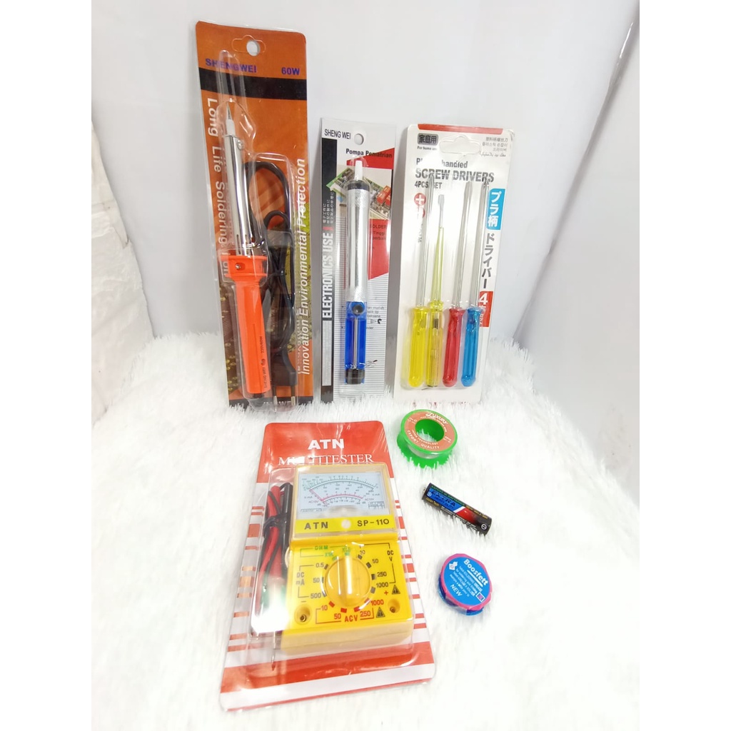 FREE TIMAH Alat Soldering Listrik gagang Plastik Solder 60Watt / Sedotan / Obeng Set / Multitester Digital / Timah / Pasta KOMPLIT