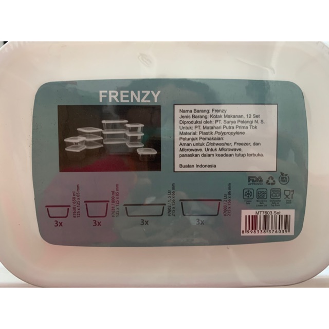 FRENZY FOOD CONTAINER PUTIH / KOTAK MAKAN PLASTIK / WADAH KULKAS