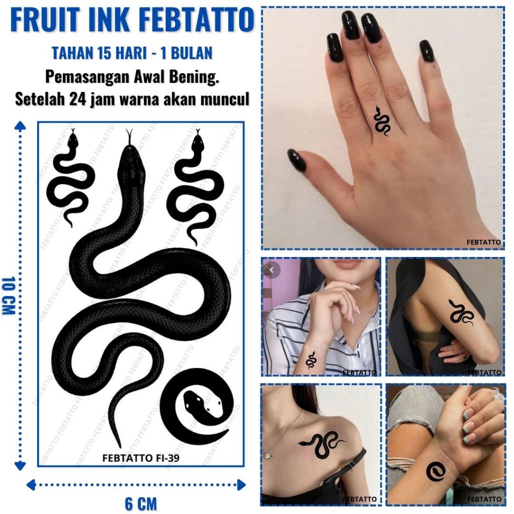 FRUIT INK Tato Temporer Mini Tahan 1 Bulan Semi Permanent ular love tokyo revengers Ukuran 6cm x 10cm Motif Aesthetic Tatto Temporary Stiker Tato Halal Grosir Tato air motif FEBTATTO FI 37 - FI 42