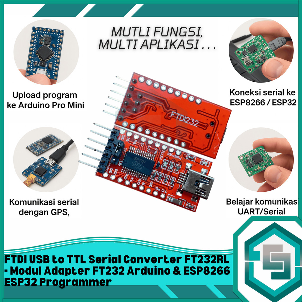 FTDI USB to TTL Serial Converter FT232RL - Modul Adapter FT232 Arduino & ESP ESP8266 ESP32 Programmer