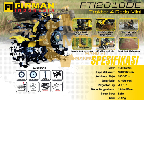 FTI2010DE ( FIRMAN Tractor Mini 4 wheels )Traktor / Tractor 4 Roda Mini FIRMAN FTI-2010DE GENERASI 3 (BARANG READY)