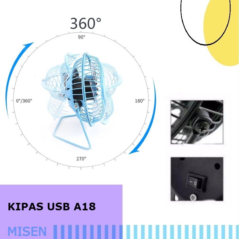 FUJIKYU MISEN PACKING HANYA PAKAI PLASTIK KIPAS ANGIN USB BAHAN BESI USB MINI FAN MEREK YAZUHO A18 DENGAN KEBEL USB TANPA COLOKAN