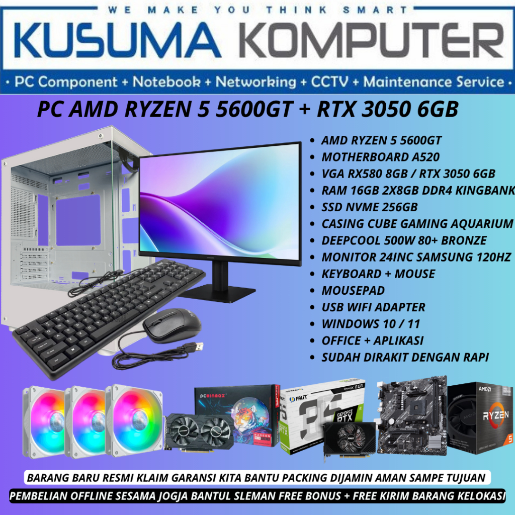 Pc Fullset Gaming AMD Ryzen 5 5600GT / RTX 3050 6GB / RX 580 / MONITOR 24INC 120Hz