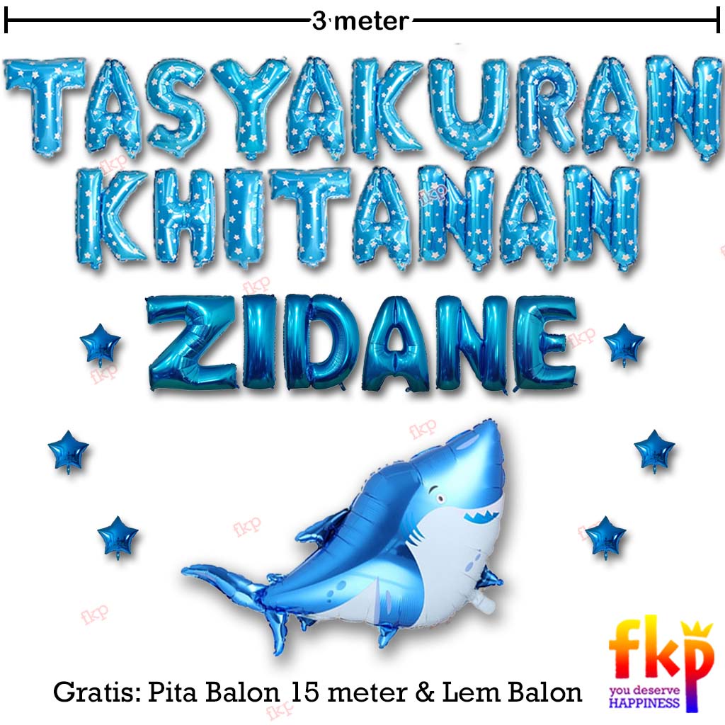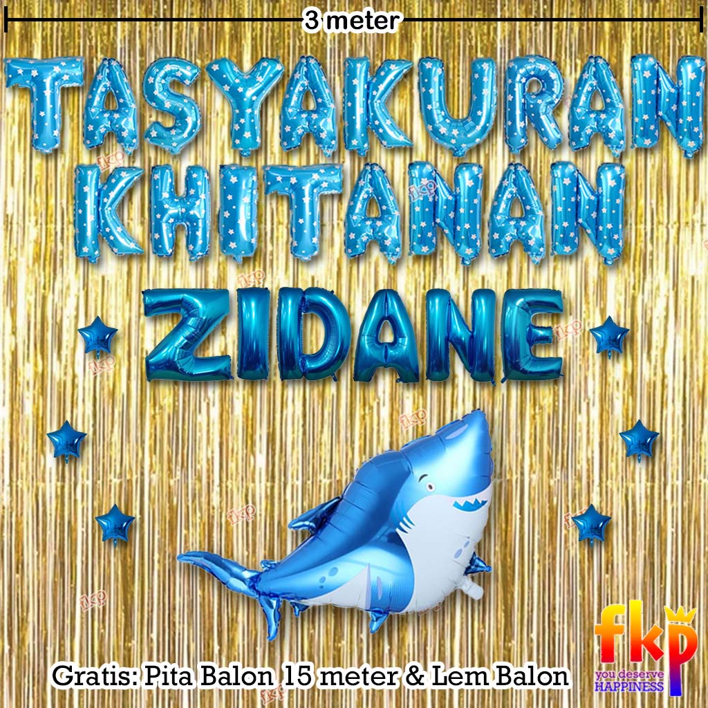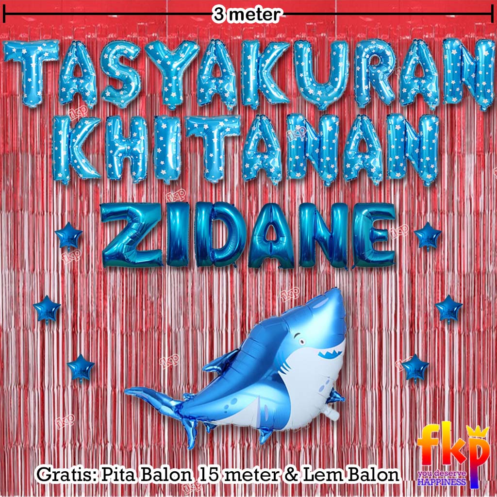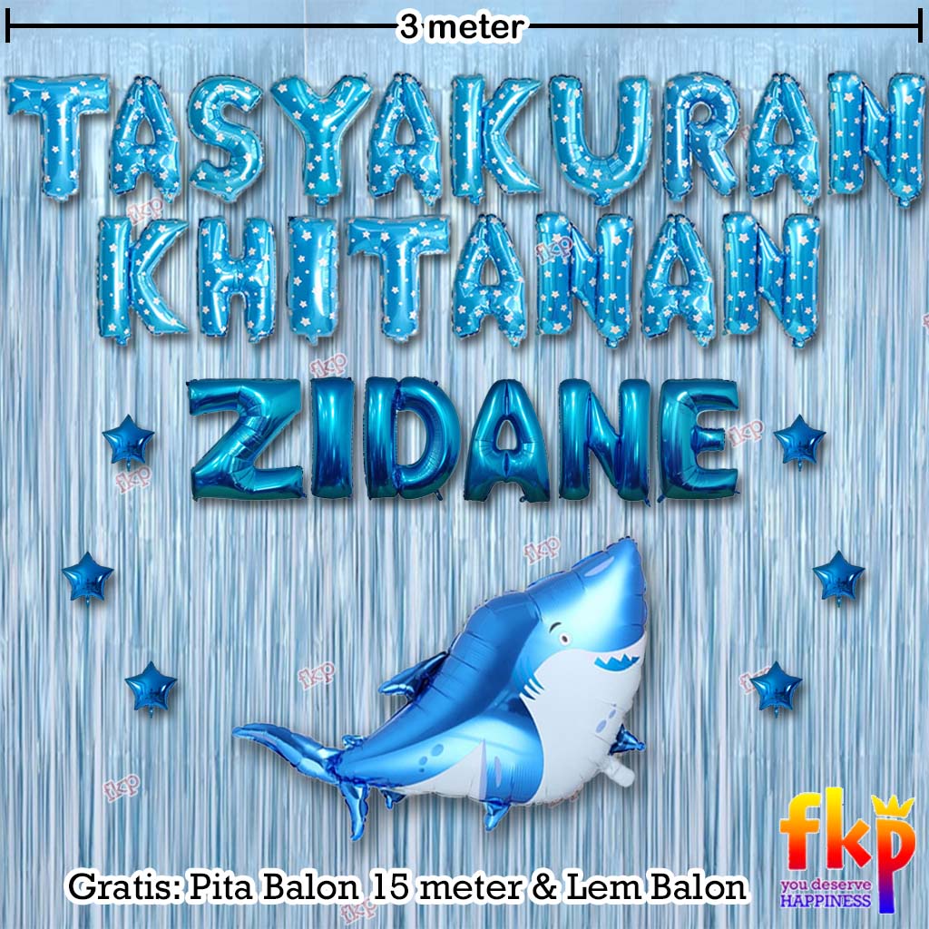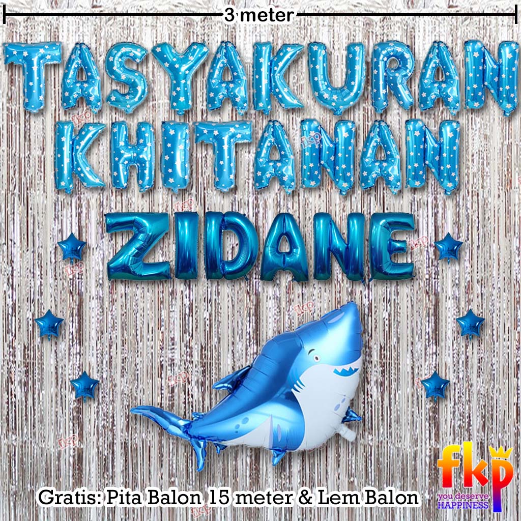 FUN KIDS PARTY Paket Dekorasi Tasyakuran Khitanan / Sunatan Dekor Balon Tema Ikan Hiu Biru Putih Laut