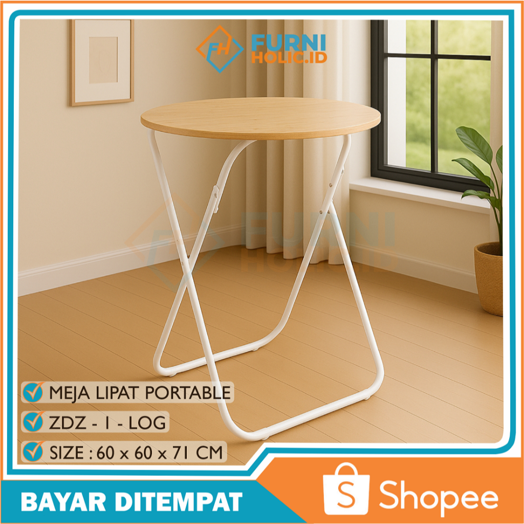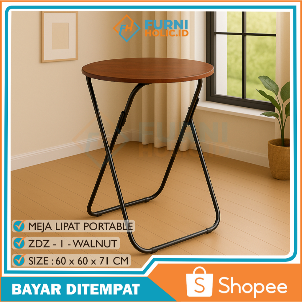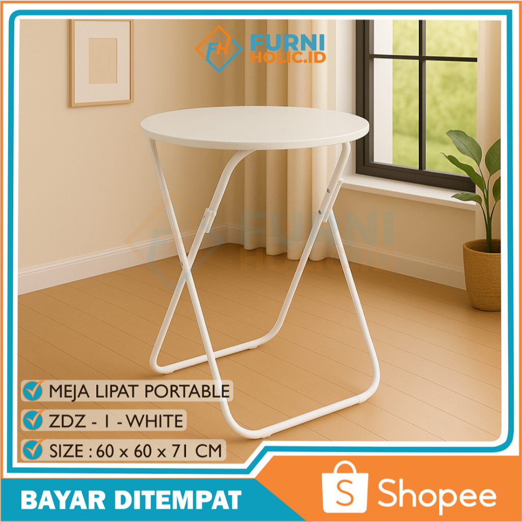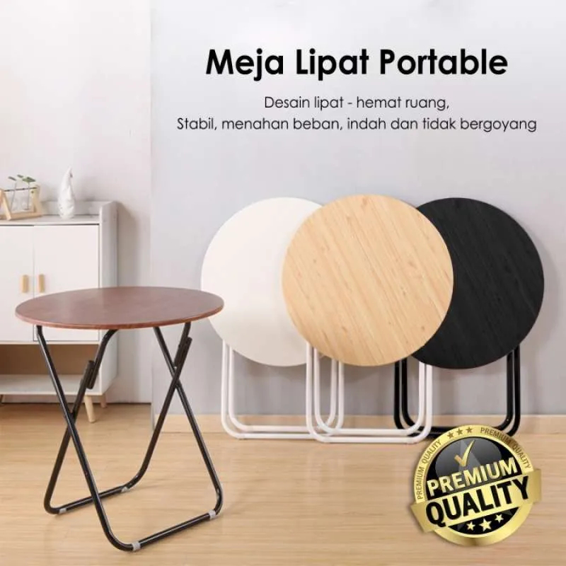 FURNIHOLIC Meja Lipat Portable Meja Lipat Bulat Diameter 60cm Meja Cafe Meja Makan Serbaguna