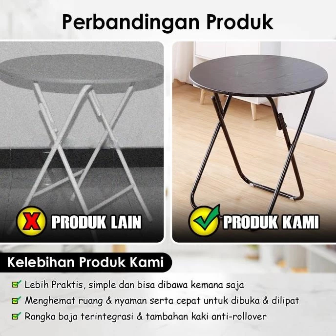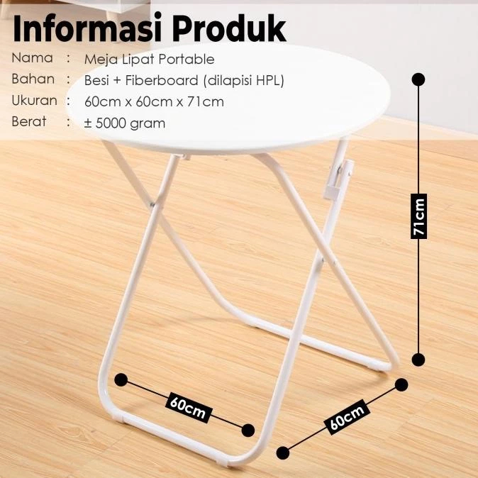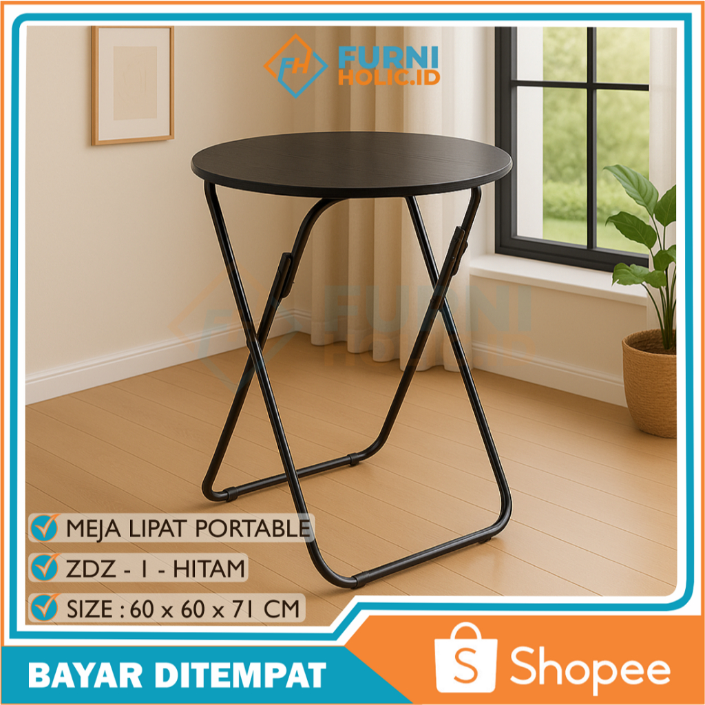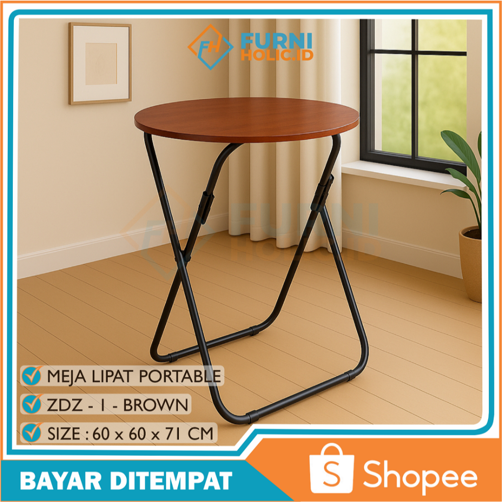 FURNIHOLIC Meja Lipat Portable Meja Lipat Bulat Diameter 60cm Meja Cafe Meja Makan Serbaguna