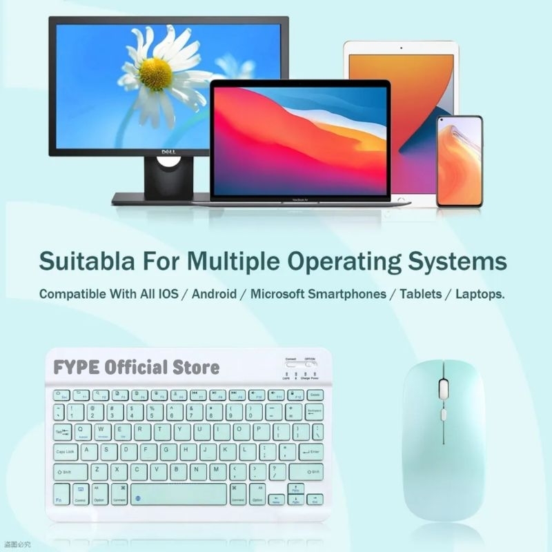 FYPE Keyboard Bluetooth dan Mouse Wireless 10 Inch Lightweight Portable PC Tablet IOS Android Hp
