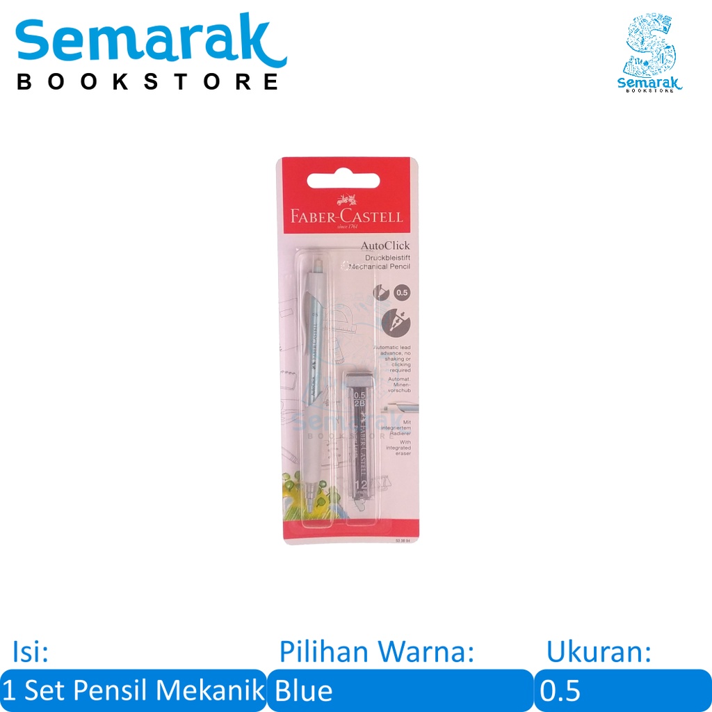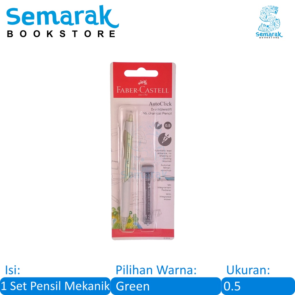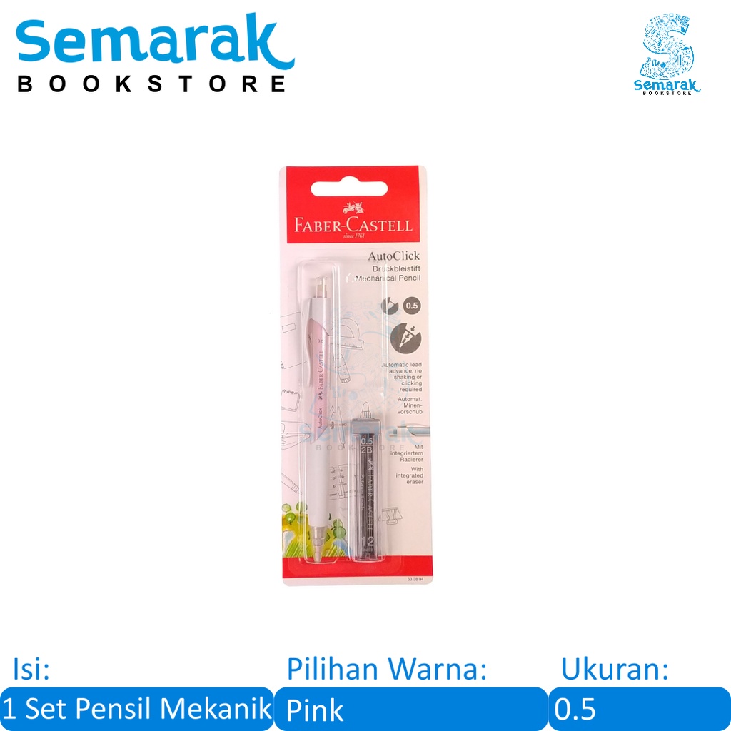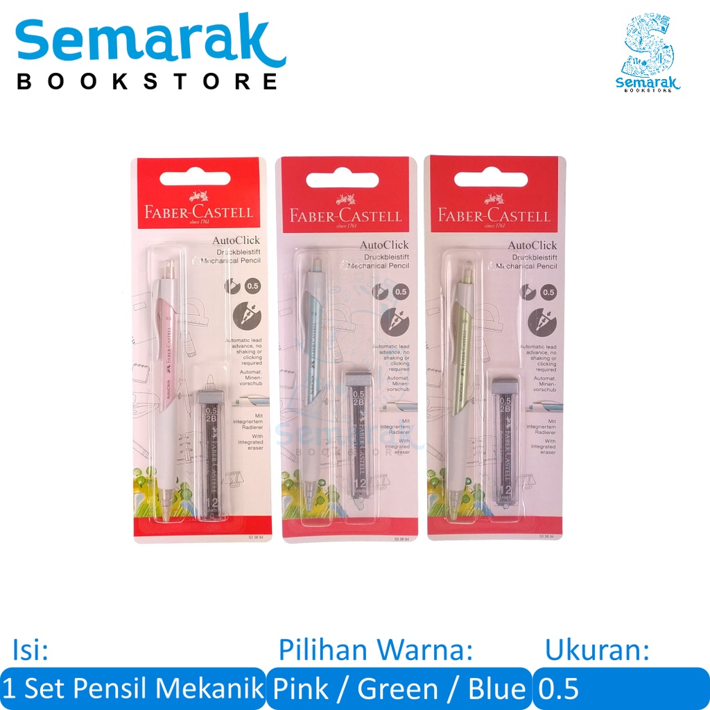 Faber Castell AutoClick Mechanical Pencil Set Pensil Mekanik dan Isinya 2B 0.5 - Pink / Green / Blue