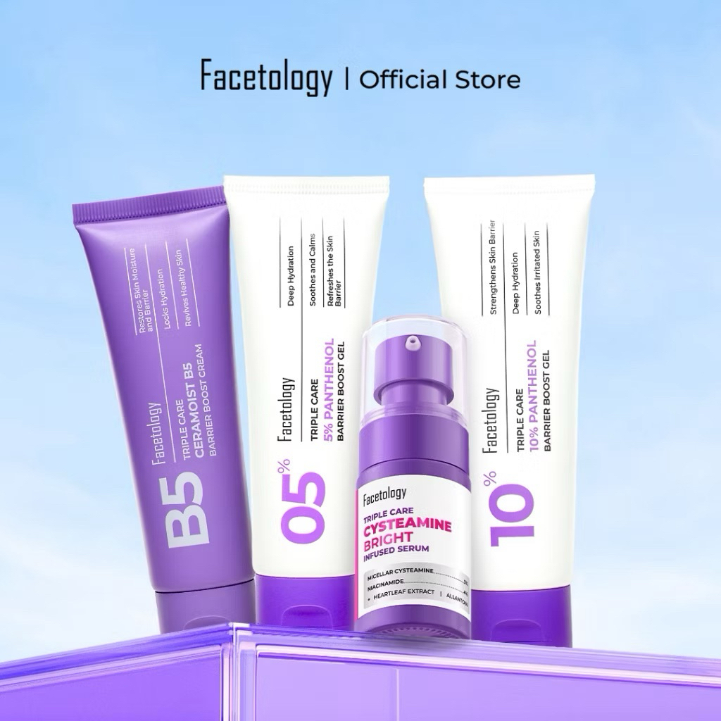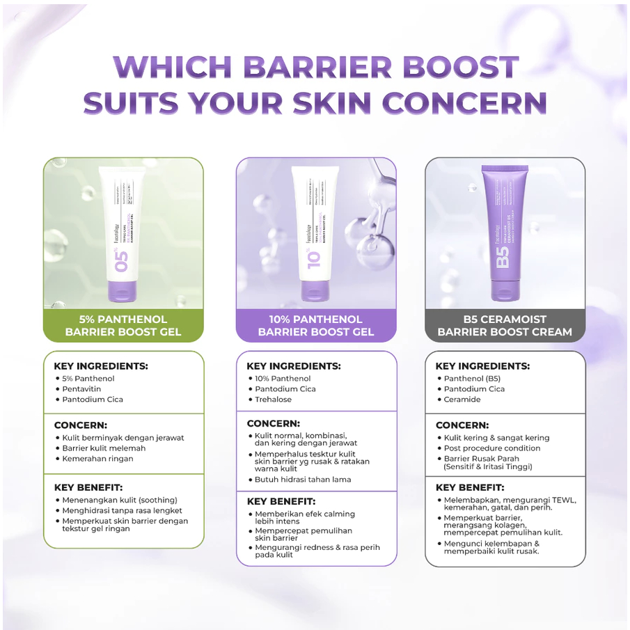 Facetology Panthenol Barrier Boost Moisturizer Series 5% | 10% Pelembap Skin Barrier Semua Jenis Kulit Redakan Kemerahan Jerawat Aman Untuk Jerawat , B5 Moisturizer 40ml | Serum Cysteamine Bright Infused 15ml
