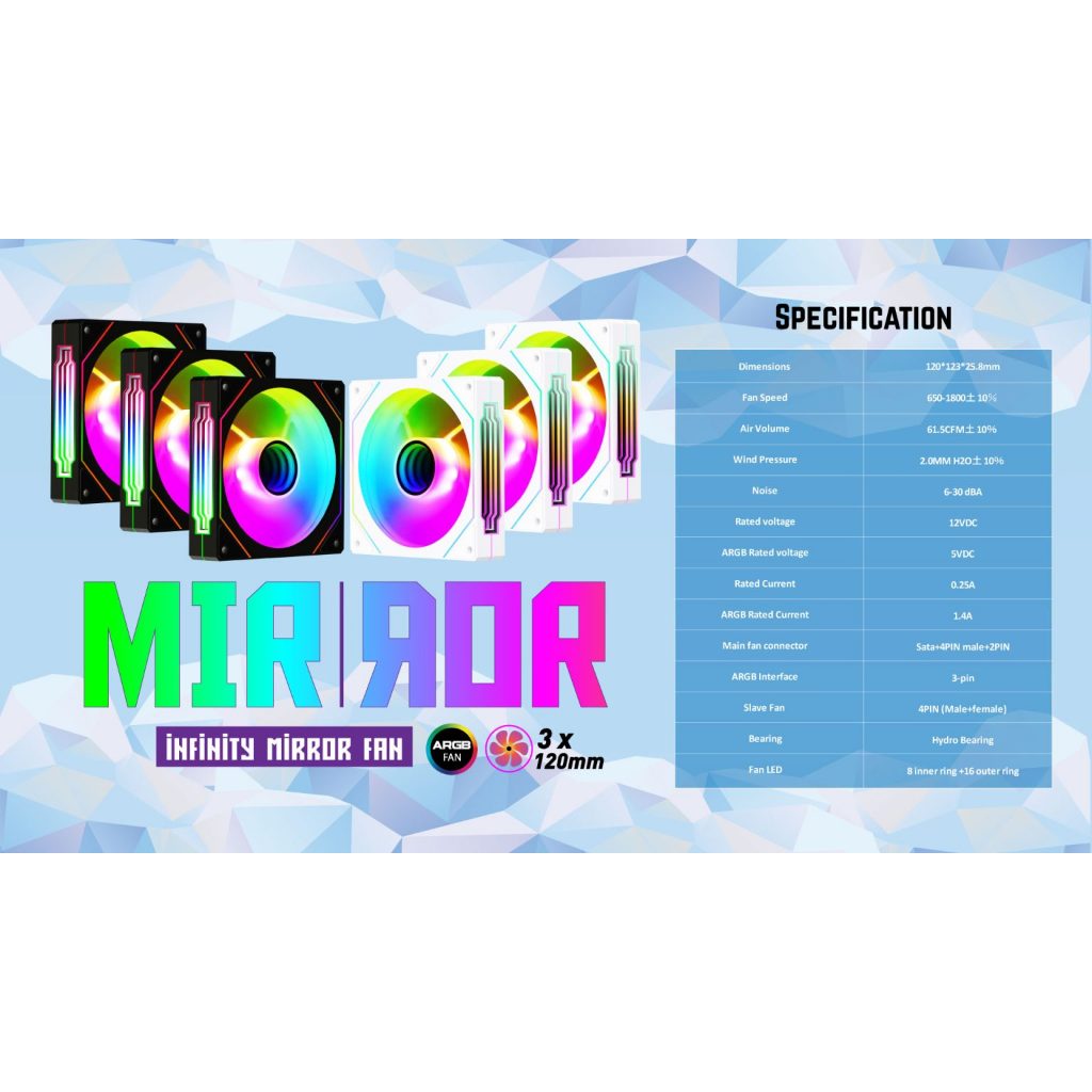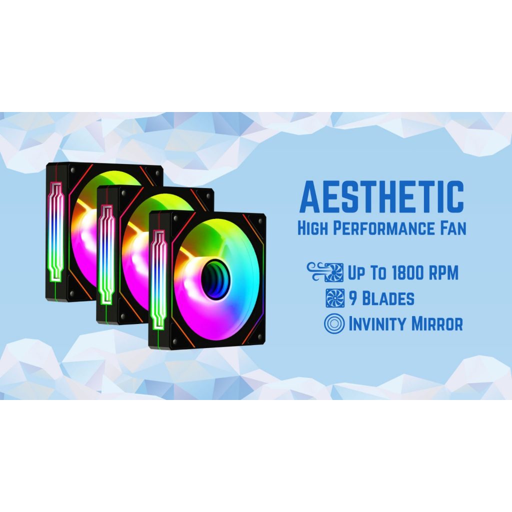 Fan Casing PC Komputer | CubeGaming Cube Gaming INFINITY MIRROR ARGB RGB | 3in1 Fan Case | 120mm 12cm | 3Pin | White Putih