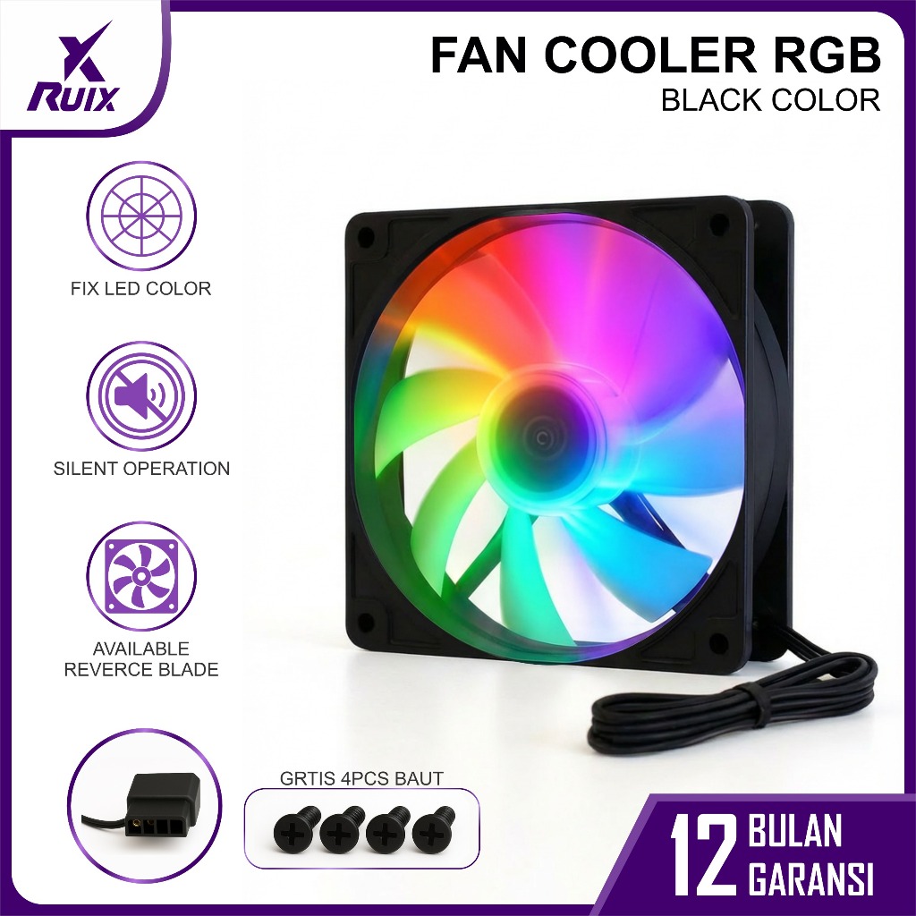 RUIX Fan Casing 12cm Shadow Black RGB High Speed Cooling Chasing LED PC Komputer Gaming Fan