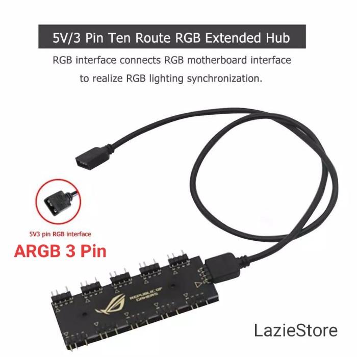 Fan Hub RGB 3 Pin to 10 Way 3 Pin 5V Splitter Fan dan LED Strip PC CPU