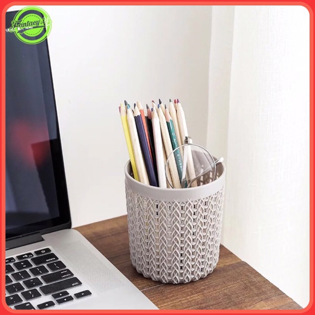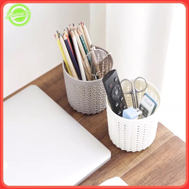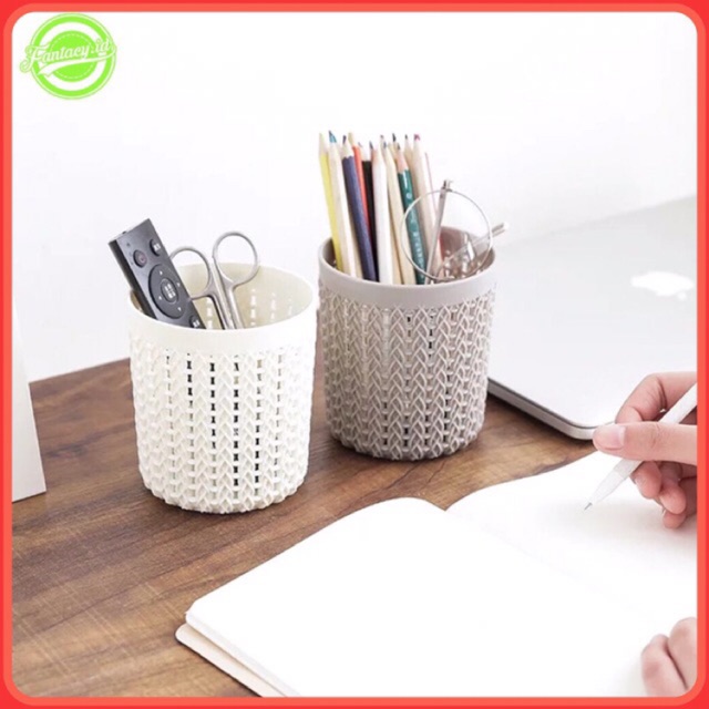 Fantacy.id Keranjang Tempat Pena Pensil Keranjang Mini Tempat Pulpen Ballpoint Motif Anyaman Rotan